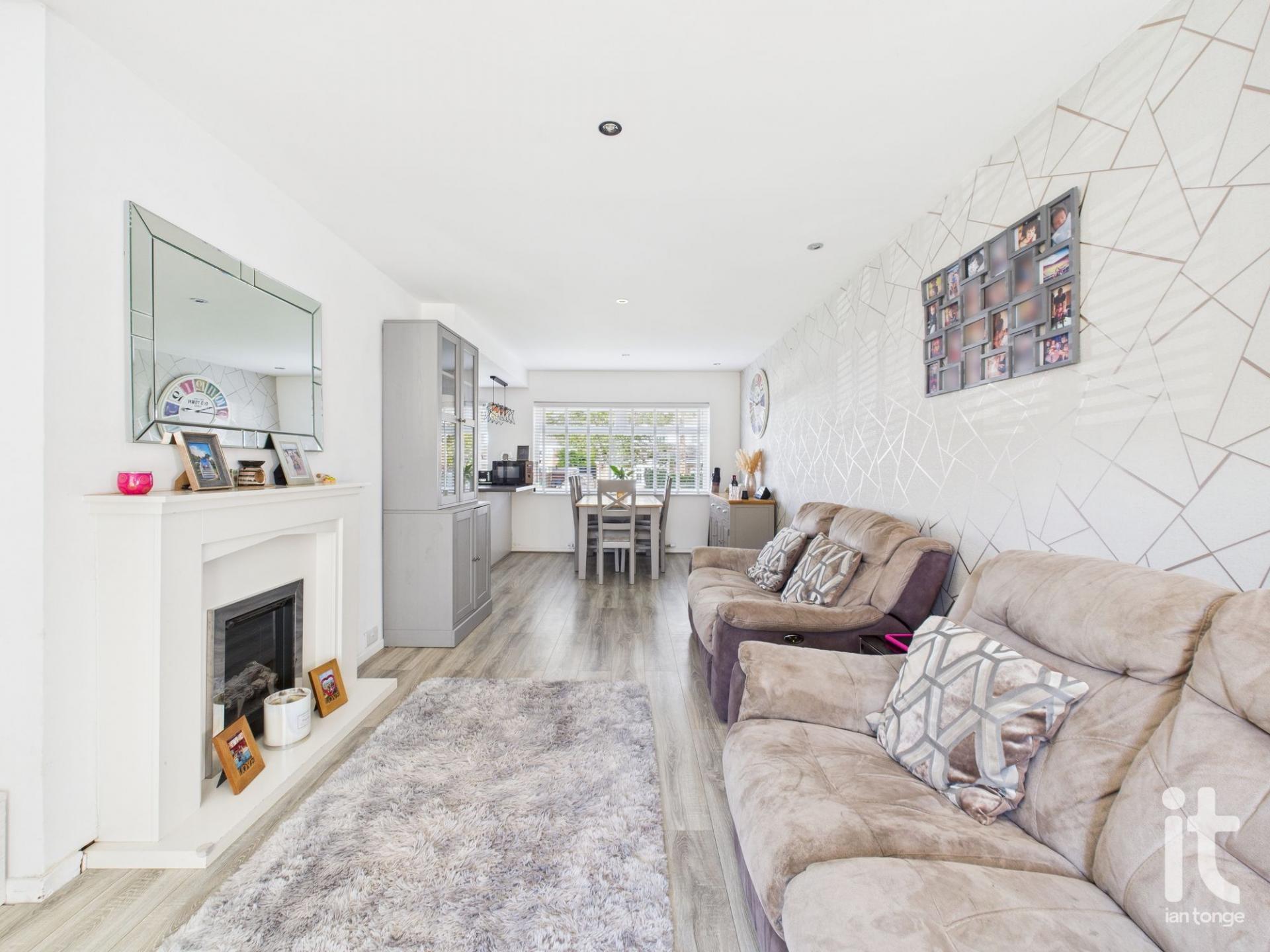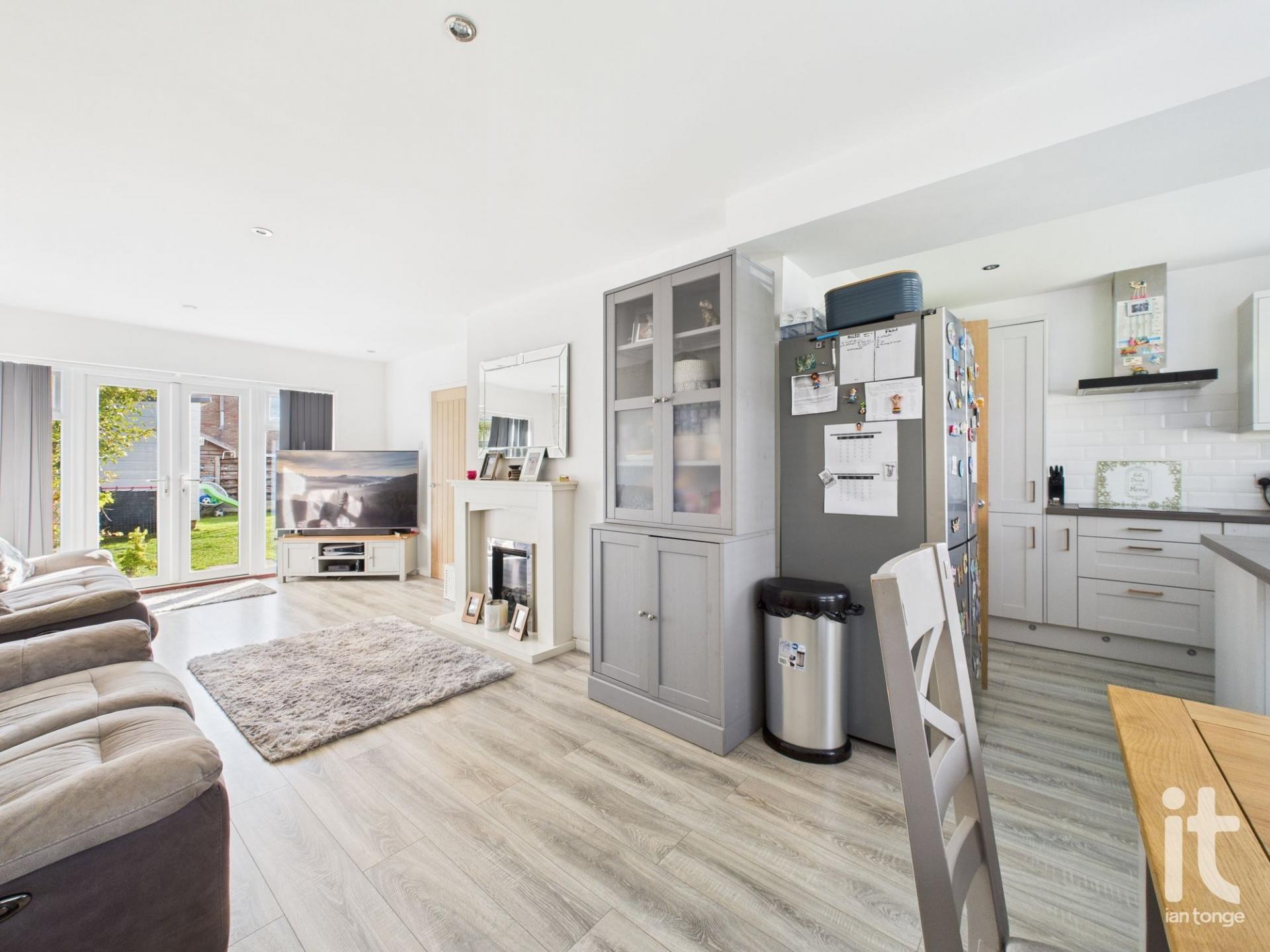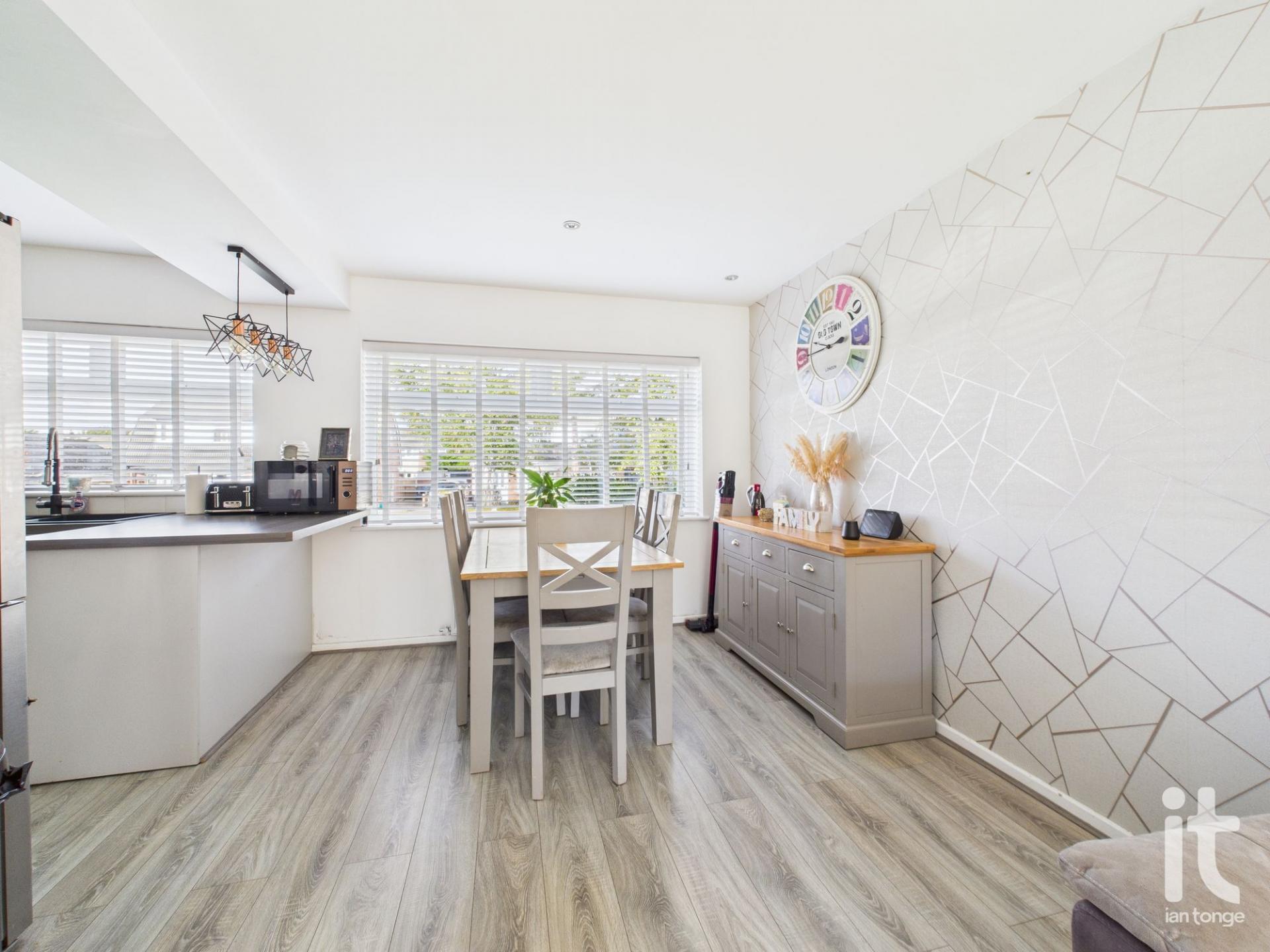 uPVC double glazed double doors leading to the rear garden, focal fireplace, laminate flooring. radiator, ceiling downlighters. The dining area has a uPVC double glazed window to the front, radiator, laminate flooring and open plan into the kitchen.