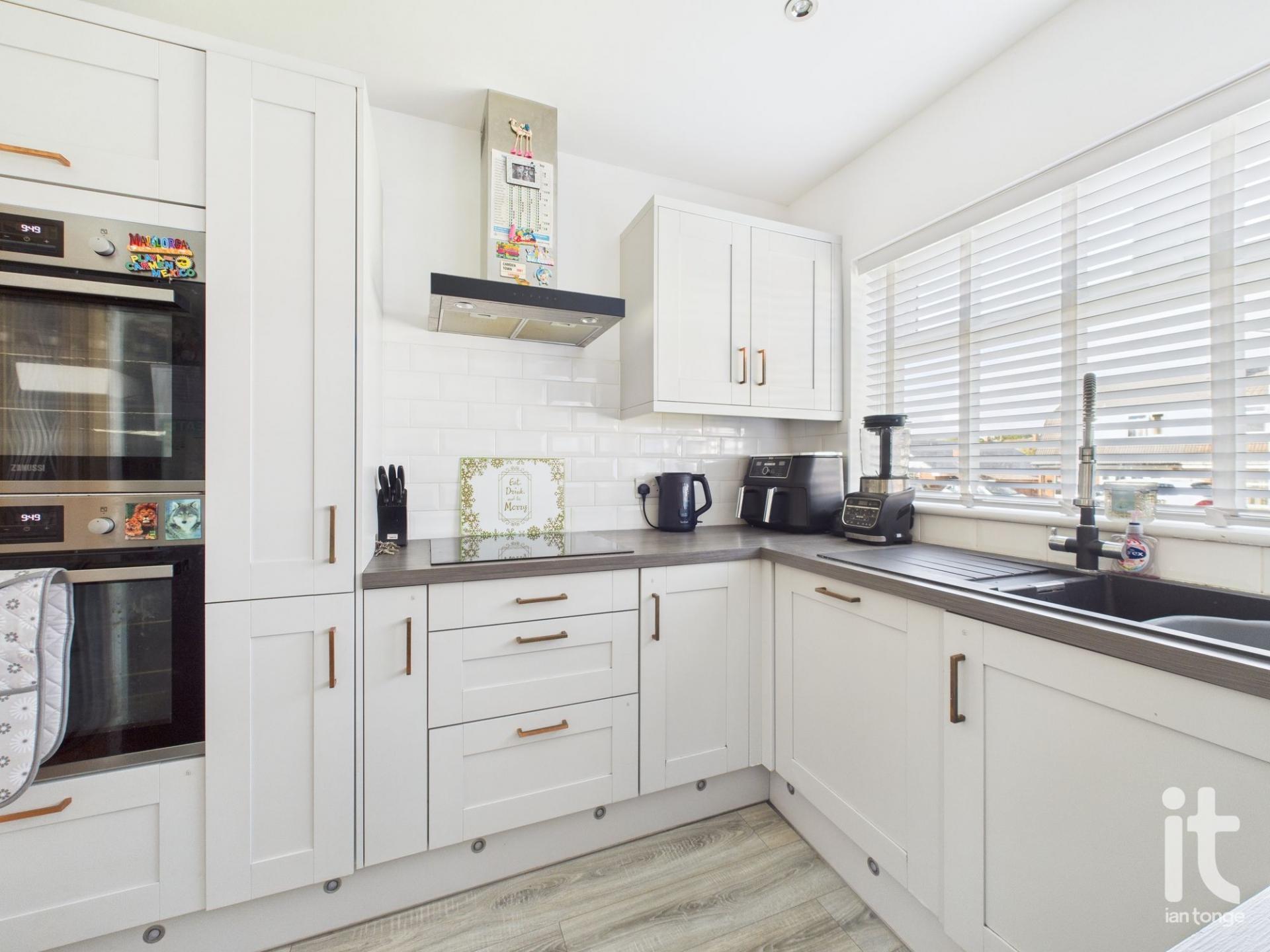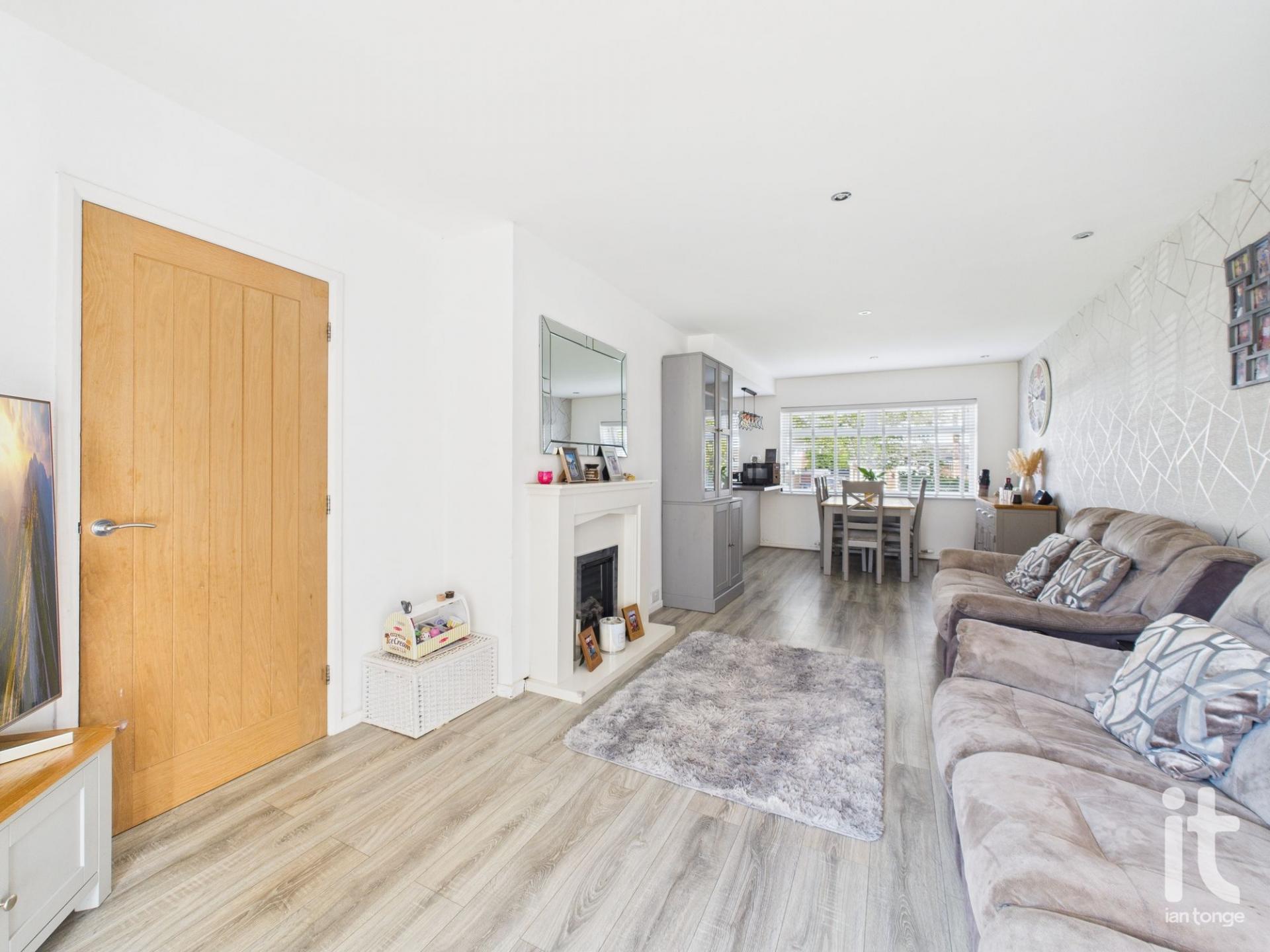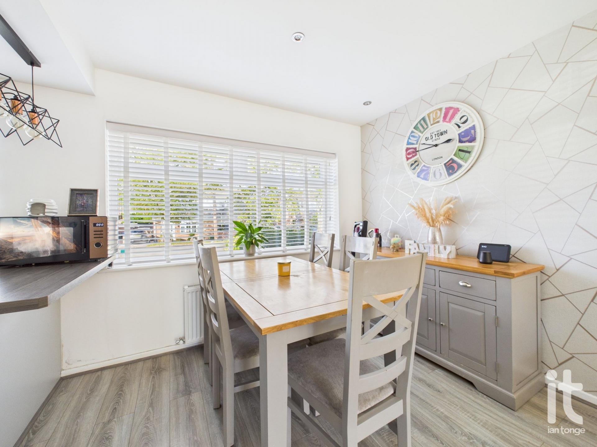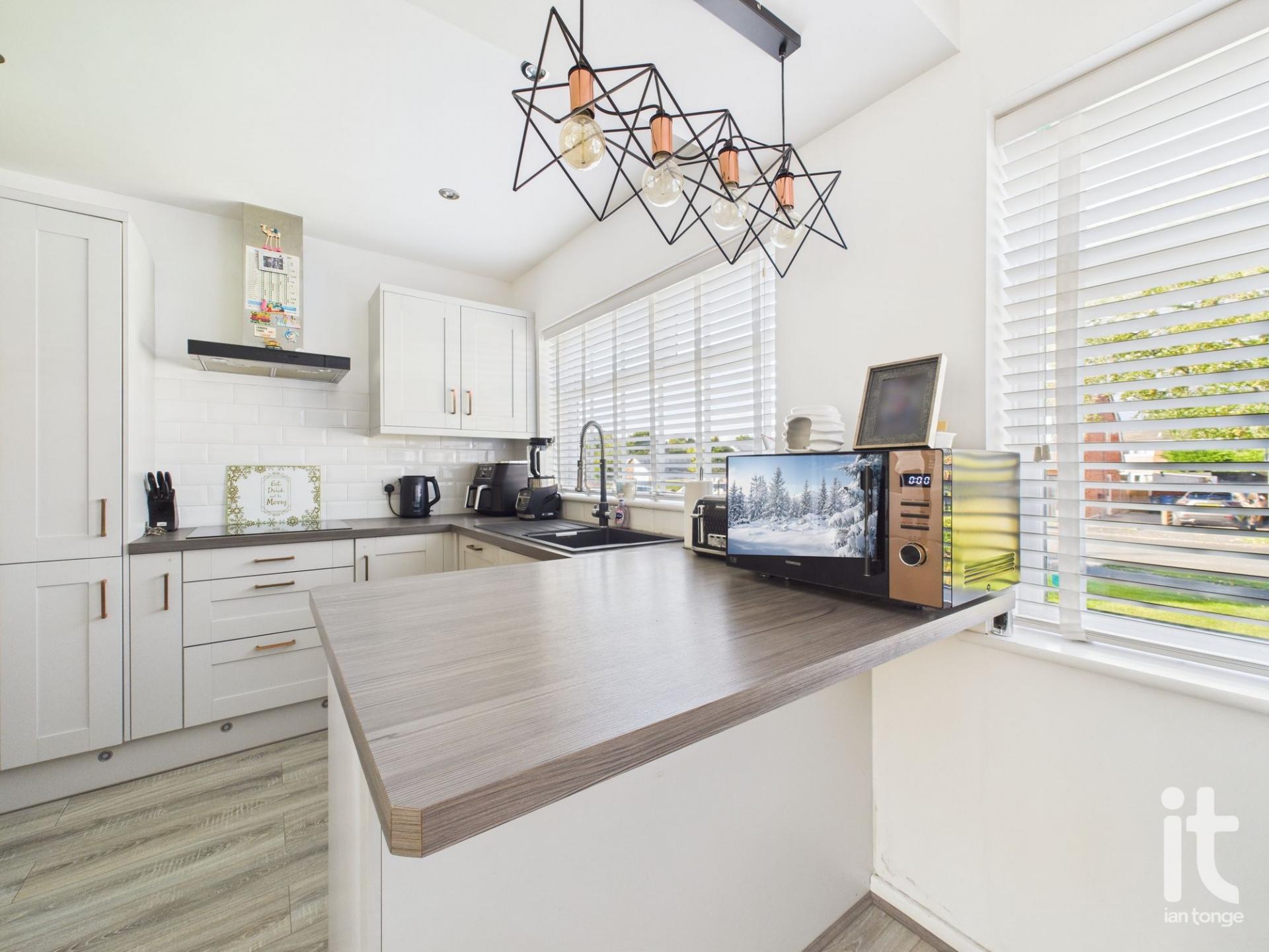 uPVC double glazed double doors leading to the rear garden, focal fireplace, laminate flooring. radiator, ceiling downlighters. The dining area has a uPVC double glazed window to the front, radiator, laminate flooring and open plan into the kitchen.