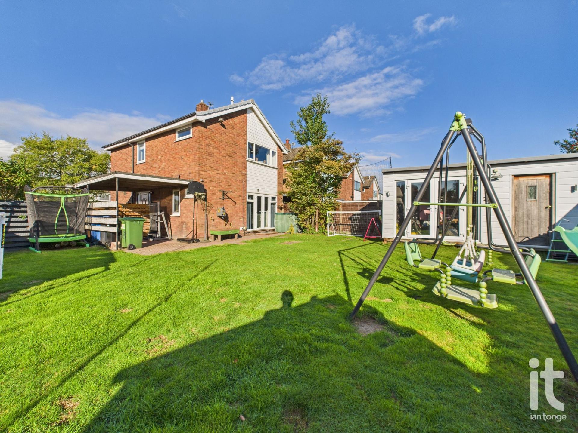 To the front there are lawned gardens and a feature block paved driveway with carport. The rear garden is enclosed by fencing and mainly lawned with shed, patio area and feature garden room.