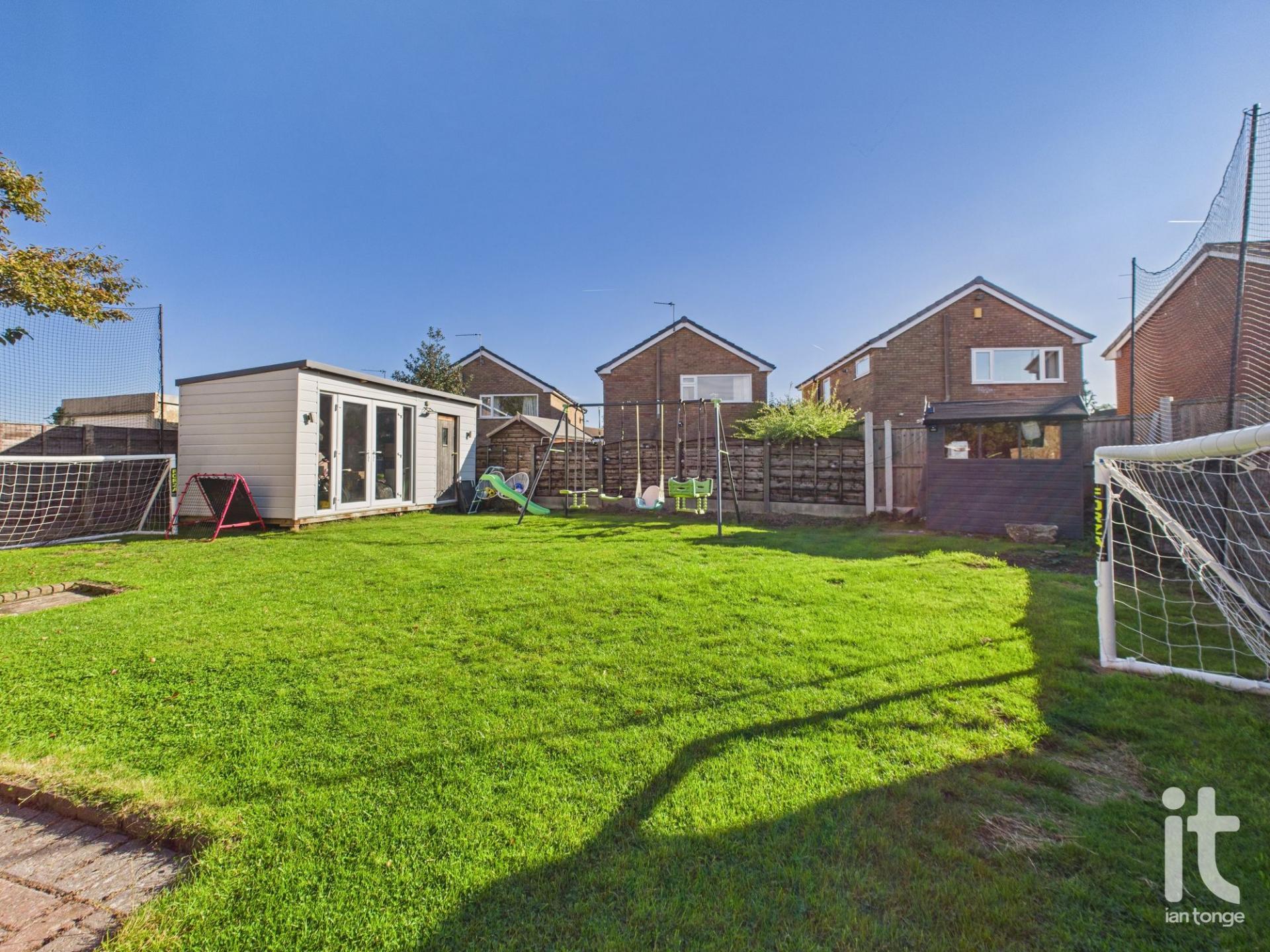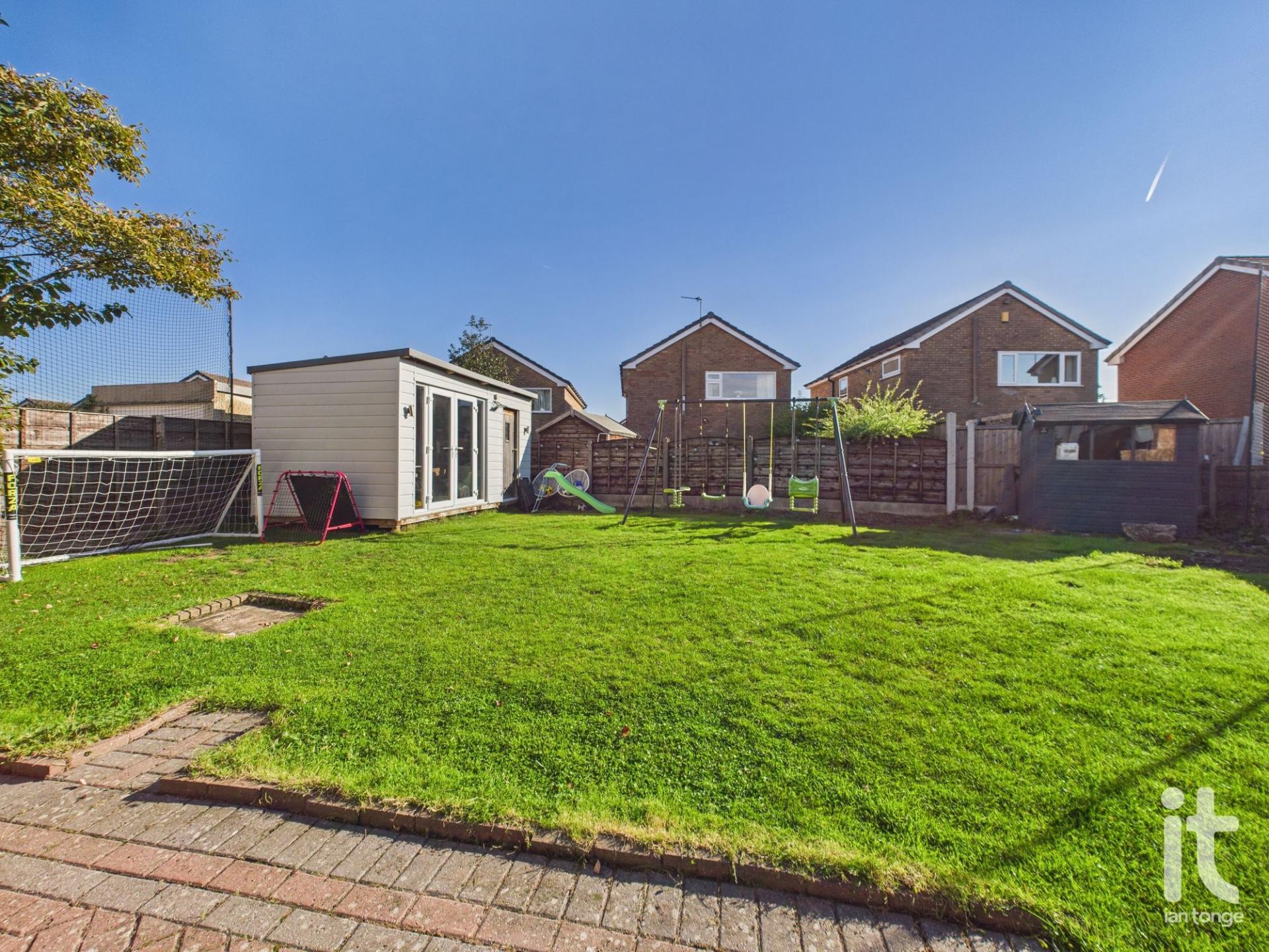 Ian Tonge Property Services market for sale this three bedroomed detached property which is located on the very popular Racecourse estate in Hazel Grove. The property commands an excellent larger than average wider plot. The property has been modernised by the present owners and features a modern kitchen and bathroom, downstairs W.C., open plan lounge/dining room, uPVC double glazing and warmed by gas central heating. The accommodation briefly comprises of entrance hallway, downstairs W.C., kitchen, lounge/dining room, landing, three bedrooms and bathroom. Externally there are lawned gardens to the front and rear aspects, carport, block paved driveway and feature garden room.