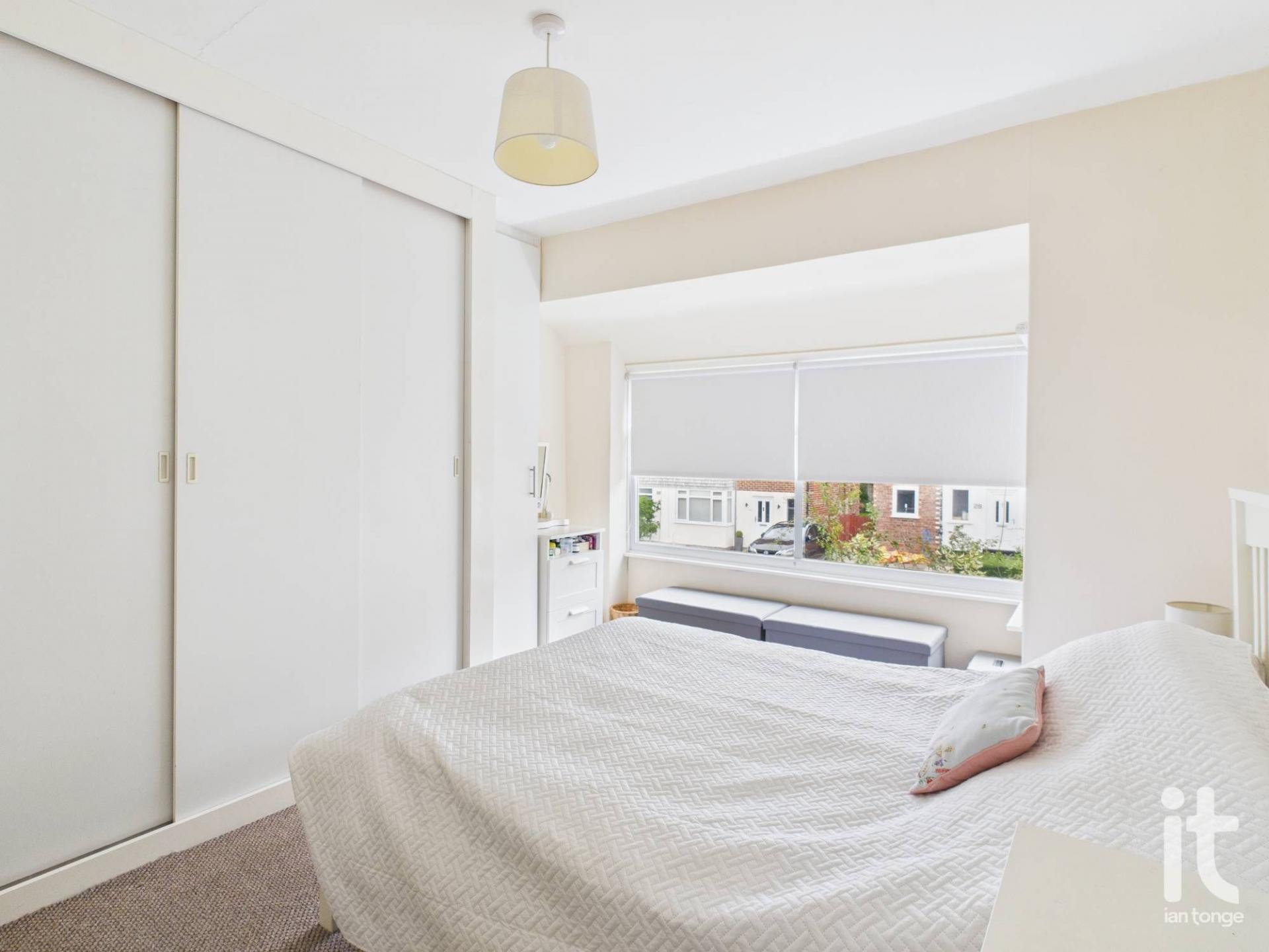 uPVC double glazed window to front aspect, range of sliding wardrobes to one wall, radiator.