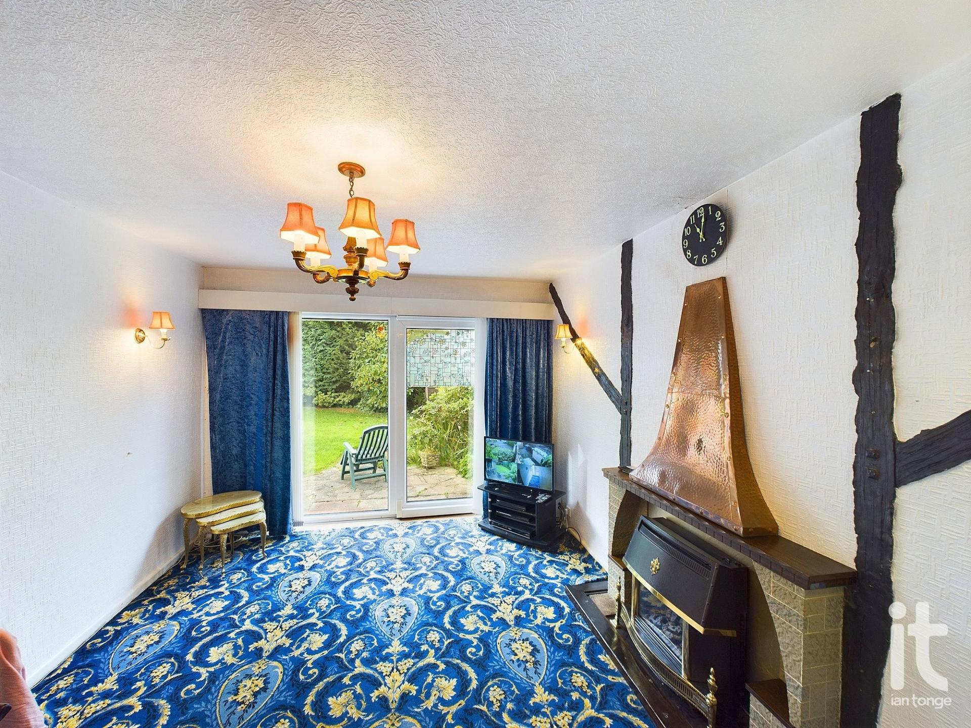 uPVC double glazed sliding patio doors, focal fireplace with gas fire, radiator.