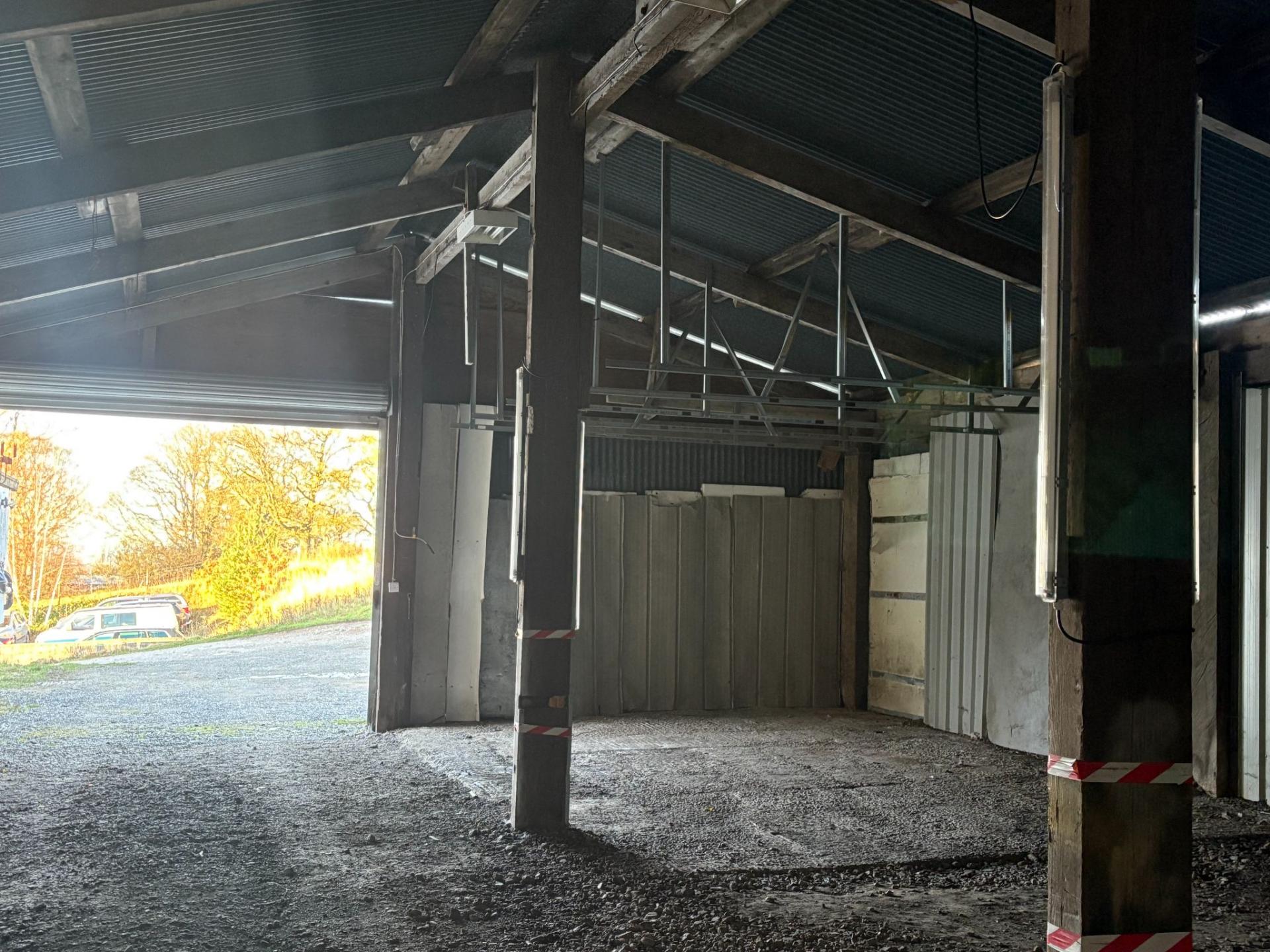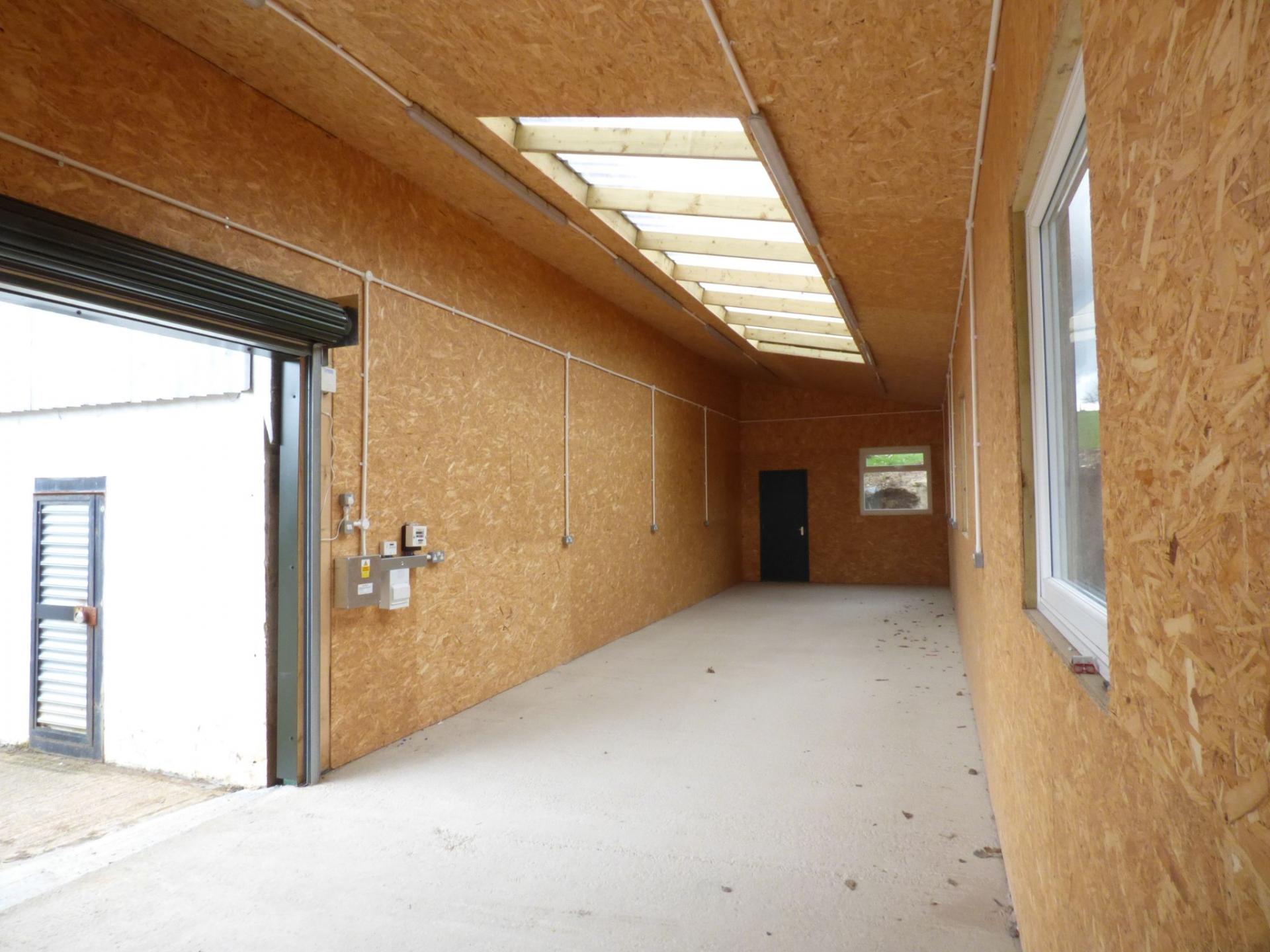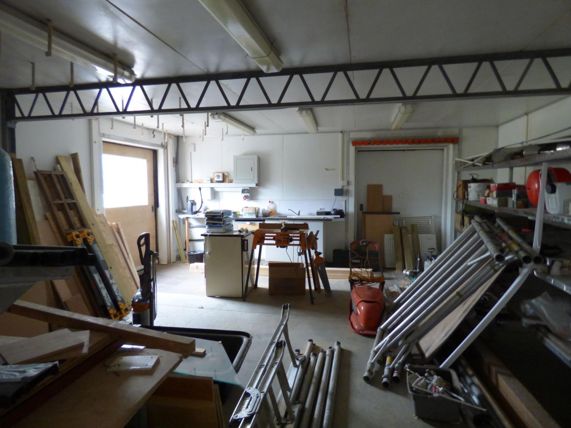 Fully insulated with door to front and door to rear, windows to the side, pitched roof with storage over joists, ceiling strip lights, ample power points. Available at £150 per week. Please note there is no vehicular access to this building for loading and unloading.