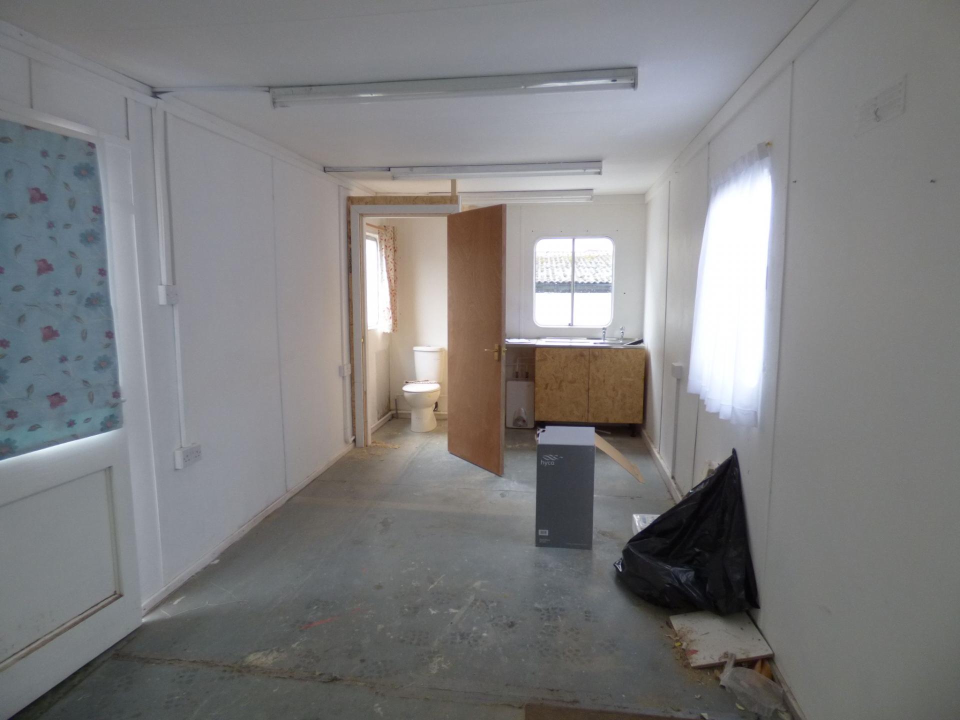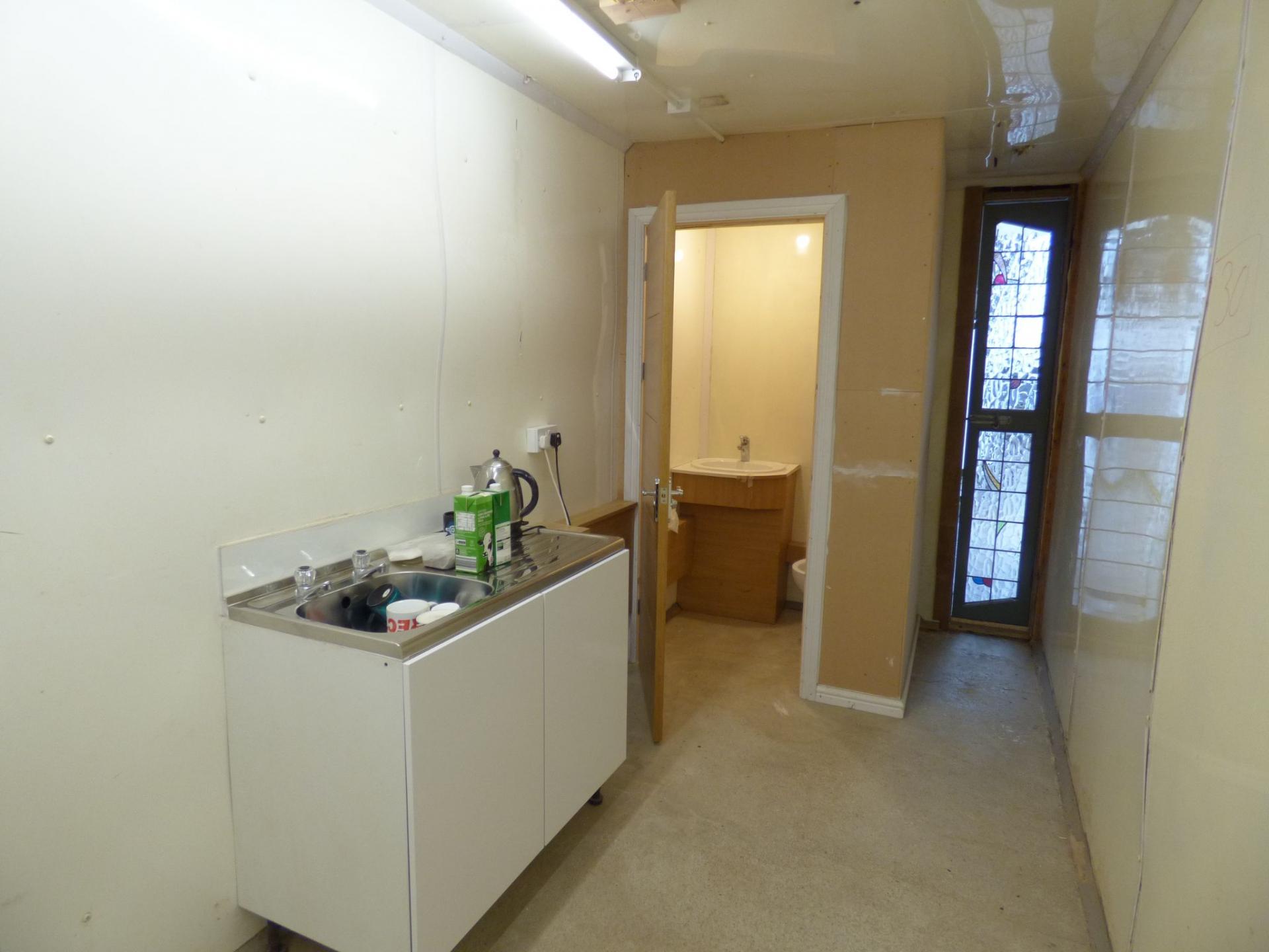 **LET AGREED** UPVC portable cabin type unit with single door access, sink, water supply, power and lighting. £90 per week.