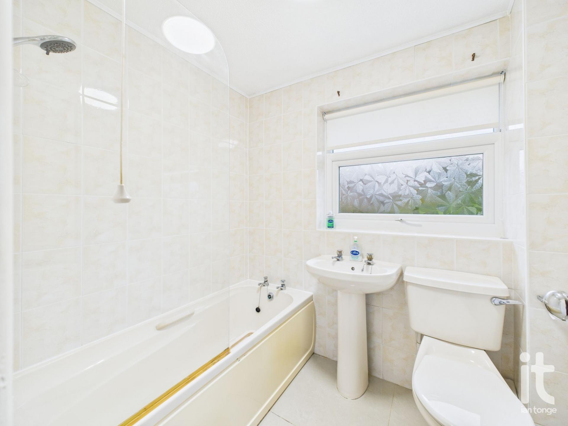 uPVC double glazed window to rear aspect, fitted suite comprising of:- panelled bath with shower over and glazed screen, pedestal hand wash basin, low level W.C. Radiator.