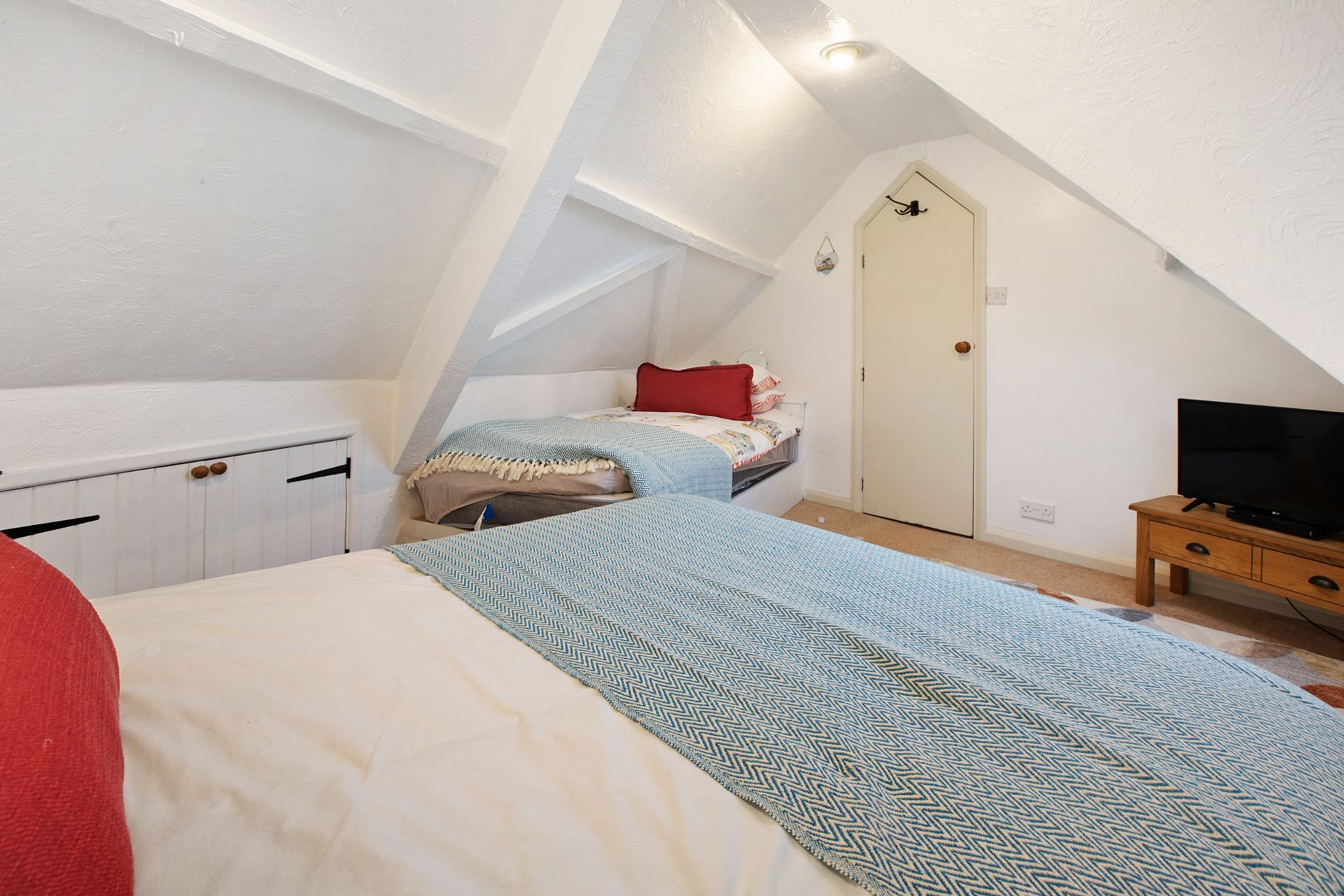 LOFT ROOM: 3.94m x 3.60m (12'11" x 11'10") REDUCED HEAD HEIGHT, Currently used as a guest room with Velux window to the rear with fitted blind, eave storage cupboards, radiator and a built-in single bed.