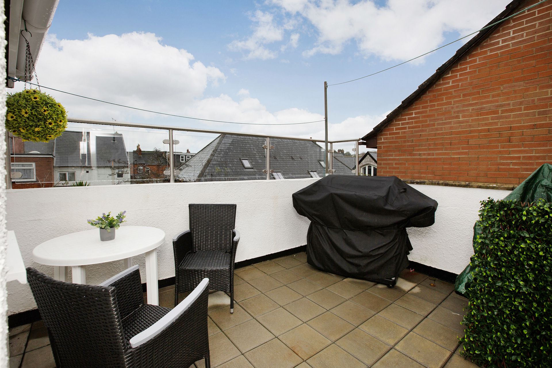 ROOF TERRACE: A fantastic space to relax and enjoy the sun with tiled flooring, lighting and a combination of galvanised railings and glass balustrade to either side.