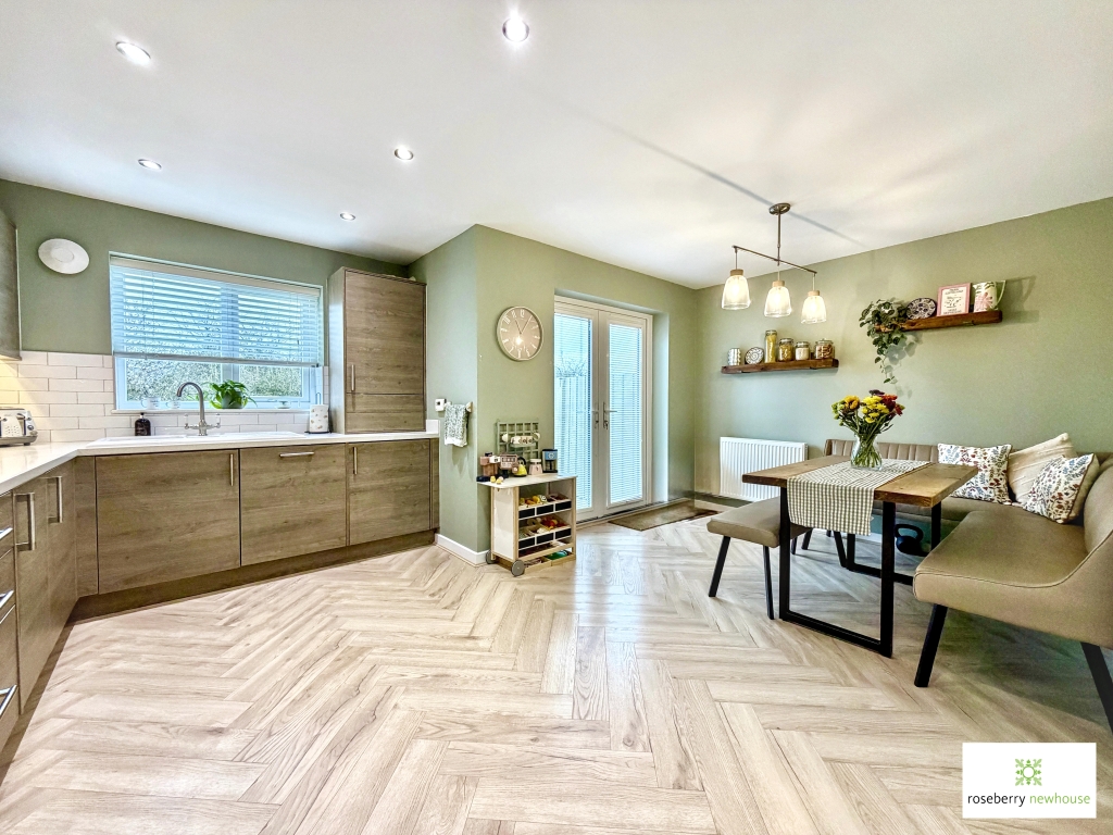 Immaculately presented and positioned in one of the most desirable spots on the development, this stunning three-bedroom detached family home enjoys a prime setting on the periphery of Orwell Grange, overlooking a peaceful green space and offering a wonderful rear outlook. Orwell Grange is an exclusive development of just 36 homes nestled within the sought-after village of Carlton. The property remains under the original 10-year NHBC warranty, providing reassurance for modern family living. Perfectly balancing a rural village lifestyle with everyday convenience, the home is ideally placed for access to local amenities, schools, public transport links and excellent North/South network connections. The living accommodation briefly comprises; a welcoming entrance hallway providing access to the main living spaces and the ground floor WC, with stairs rising to the first floor. The lounge is a comfortable and stylish reception room, perfect for relaxing with family. With a pleasant outlook and generous proportions, it offers an inviting space for both everyday living and entertaining. A real heart of the home, the modern kitchen diner provides an excellent open-plan space for cooking and dining. Fitted with contemporary units and ample worktop space, it is ideal for family meals and social gatherings, with French doors access leading out to the rear garden. Conveniently located off the hallway, the WC is a practical addition for guests and family life. On the first floor arranged of a central landing lies the bedroom and bathroom accommodation. Bedroom one is a well-proportioned principal bedroom offering a comfortable retreat, complete with its own private en-suite. Modern and neatly presented, the en-suite provides added convenience with contemporary fittings. A generous second double bedroom, ideal for family members or guests, enjoying plenty of natural light. Bedroom Three is a versatile room, perfect as a child’s bedroom, home office or nursery. The main bathroom is fitted with a modern suite, serving the additional bedrooms with style and practicality. Externally to the front, a block-paved driveway and adjoining garage provide ample off-road parking. The adjoining garage offers excellent storage or secure parking, with further potential for additional utility use and has a rear courtesy door into the garden. The rear garden is fully fenced for privacy and is predominantly laid to lawn, complemented by a couple of seating areas — perfect for outdoor dining, entertaining, or simply relaxing. In summary the property is nestled in a peaceful and scenic village setting, this beautiful, detached home offers a harmonious blend of modern living and natural surroundings. Perfect for families or those seeking a tranquil retreat, Bilsdale Close is a rare opportunity in this exclusive development. Don’t miss the chance to make this exquisite property your own — contact us today to arrange your viewing.