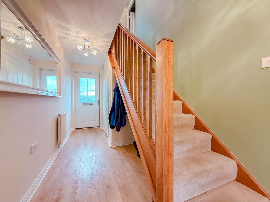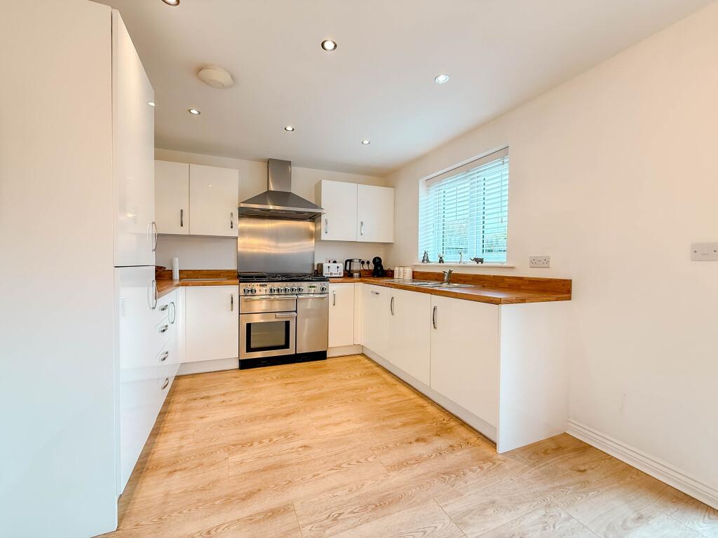 Internally the home is well maintained and thoughtfully styled, with a layout designed to maximise both space and natural light. The ground floor features a welcoming entrance hallway, a comfortable lounge perfect for relaxing evenings, and an impressive open plan kitchen and dining area that forms the heart of the home. With contemporary units, integrated cooking appliances and ample worktop space, this area is ideal for family life and entertaining, with French doors providing direct access to the rear garden.