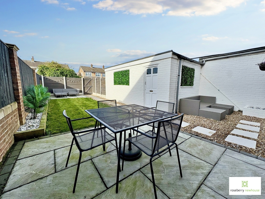 We are delighted to welcome to the market this charming three-bedroom semi-detached home, ideally located in the ever-popular Thornaby area. Perfectly positioned close to a range of local amenities, reputable schools, and excellent transport links, this home offers a wonderful blend of convenience, comfort, and modern living — making it a fantastic choice for families, couples, first-time buyers, or professionals alike. The property features well-proportioned living accommodation over two floors, complemented by a private rear garden with multiple outdoor entertaining spaces and off-road parking to the rear with garage access. Thoughtfully designed and lovingly maintained, this home provides a cozy yet contemporary living environment ideal for today’s lifestyle. Upon entering the property, you are welcomed into a bright entrance porch with stairs to first floor. An inviting lounge features a large bay window to the front aspect, allowing natural light to fill the space. This comfortable living room offers ample space for both seating and media furnishings, making it the perfect place to relax or entertain guests. Tasteful décor and neutral tones create a warm and homely atmosphere. The heart of the home lies in the lovely and functional kitchen diner, which offers a modern range of fitted wall and base units, work surfaces, and integrated cooking appliances. A stainless-steel sink unit and window overlooking the rear garden provide a bright workspace, while the adjoining dining area allows for family meals and social gatherings. Rear access French doors open directly into the garden, seamlessly connecting indoor and outdoor living. On the first floor lies bedroom one, a well-proportioned principal bedroom located to the front of the property, offering space for a double bed and additional furnishings. Its neutral décor provides a calming retreat after a long day. Bedroom 2 is generous second bedroom situated to the rear, enjoying pleasant views over the garden. Ideal as a double bedroom or guest room, bedroom 3 is a comfortable third bedroom, perfect for a nursery, single room, or study/home office, offering flexibility to suit your lifestyle needs. Completing the accommodation is a modern family bathroom fitted with a three-piece suite comprising a shower cubicle, wash hand basin inset into vanity unit and low-level WC. Finished in half height panelling for a bright look. Externally, the property truly shines with its beautifully landscaped west-facing garden, perfect for outdoor entertaining and relaxation. The garden is thoughtfully designed with two patio terraces, a gravelled seating area, lawned garden, and raised timber sleeper borders, offering multiple zones for dining, play, or leisure. The rear of the property also benefits from off-road parking and access to a garage, which includes a courtesy door leading directly into the rear garden for added convenience. In summary this delightful three-bedroom semi-detached home combines practicality, style, and charm in equal measure. With its excellent location, well-presented interiors, and enviable outdoor space, it represents an ideal opportunity for those seeking a ready-to-move-into home in a sought-after area. Whether you’re a first-time buyer, a professional couple, or looking to downsize, this property is a must-see.