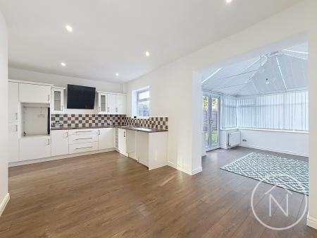 This beautifully presented three bedroom, one bathroom semi-detached house offers a perfect blend of modern living and classic charm. The property features two well-proportioned reception rooms, one of which opens into a contemporary open plan kitchen dining area. The kitchen boasts sleek white units, stylish checkered and tiled backsplashes, and flooring. Ample natural light floods the interiors through large windows and French doors, creating bright, inviting spaces throughout. The layout extends seamlessly into a bright conservatory, which provides direct access to the spacious, fenced rear garden - ideal for indoor-outdoor living and family gatherings.