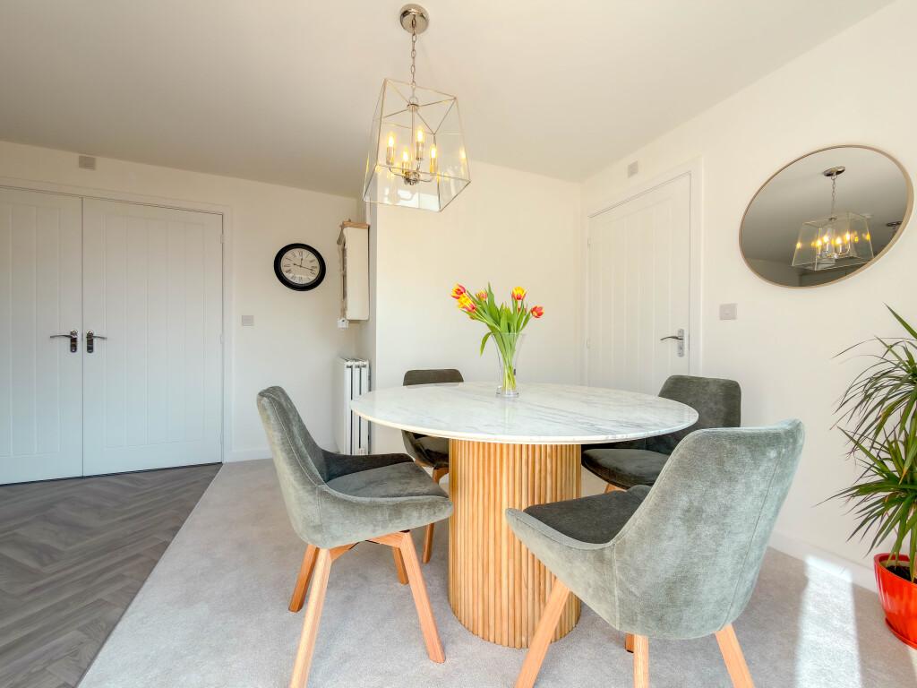 Internally, the property features superior fixtures and fittings, creating a finish that goes beyond the standard developer offering and delivers a true turnkey home. The ground floor provides a welcoming entrance hall, a spacious and comfortable lounge, and an impressive open plan kitchen diner that forms the heart of the home. Designed with both everyday living and entertaining in mind, this space features contemporary cabinetry, integrated appliances and French doors opening directly onto the rear garden. A convenient ground floor WC and integral access to the garage further enhance practicality.