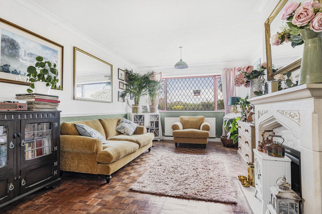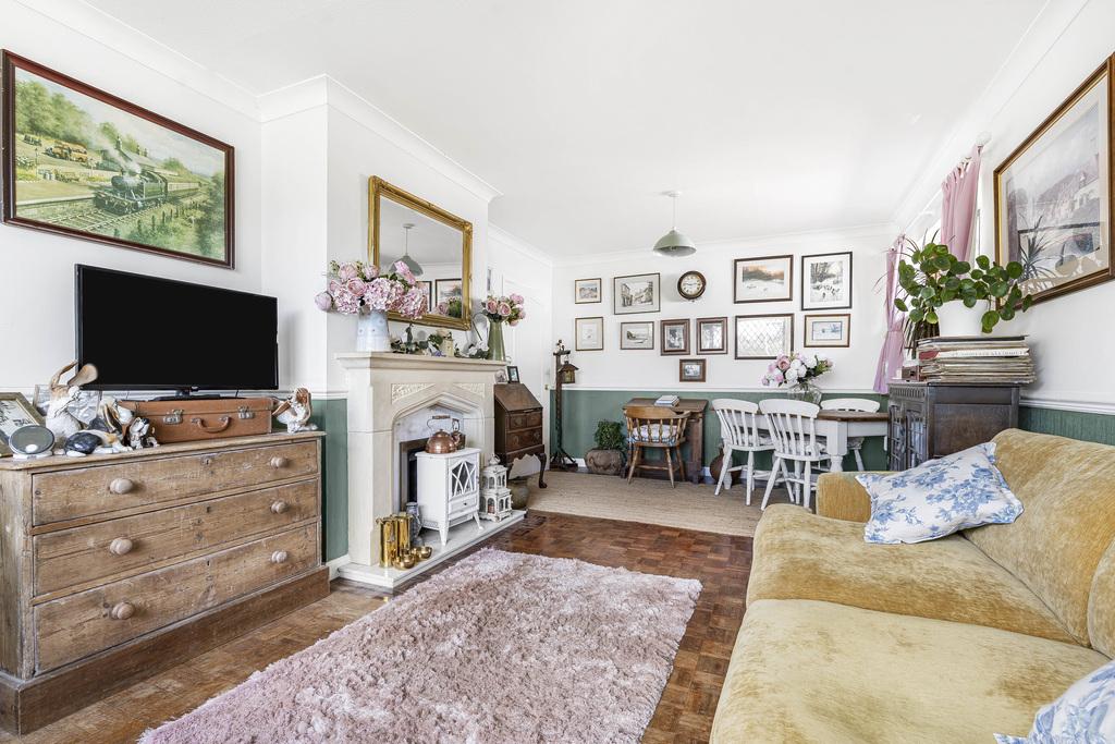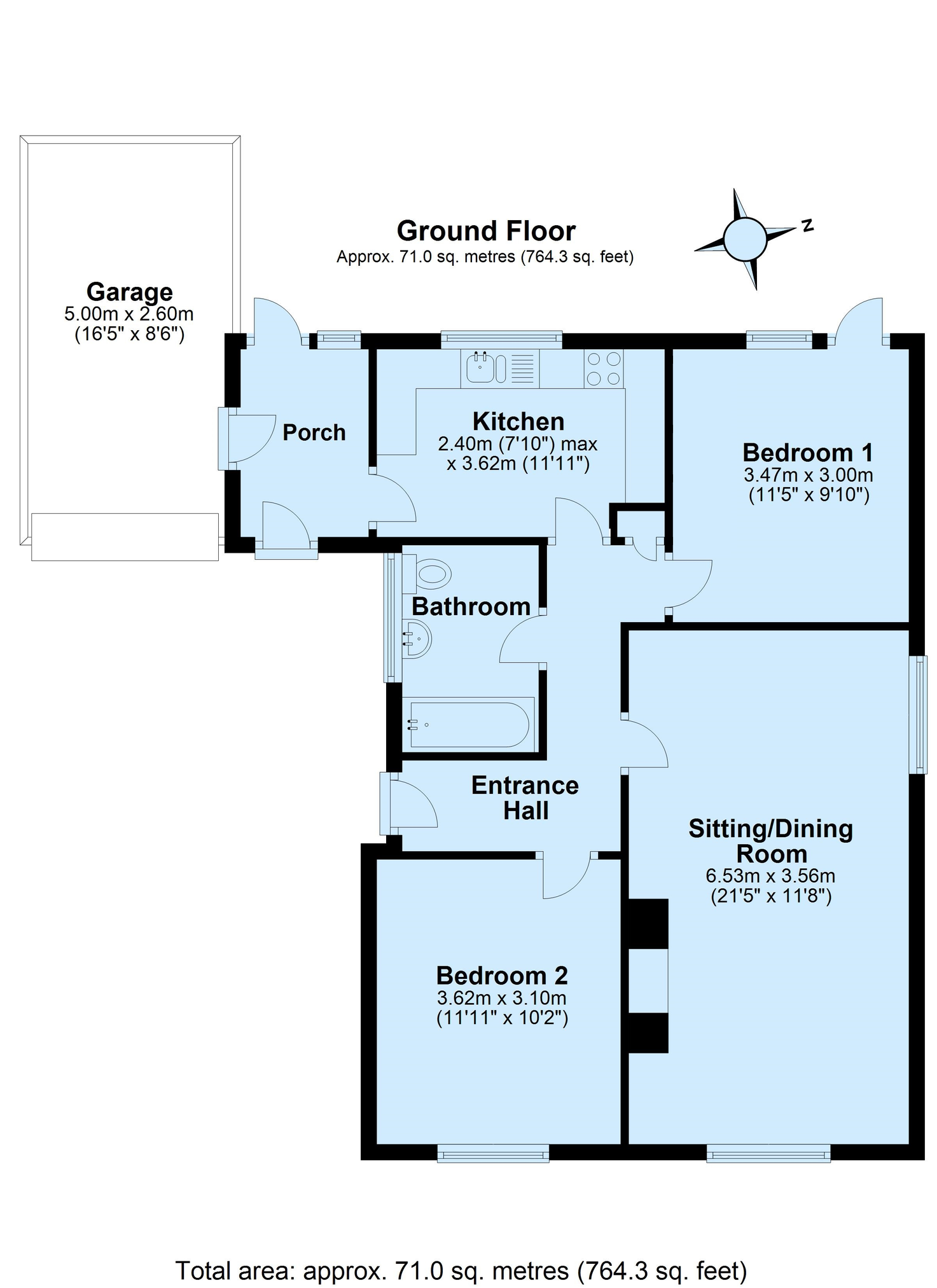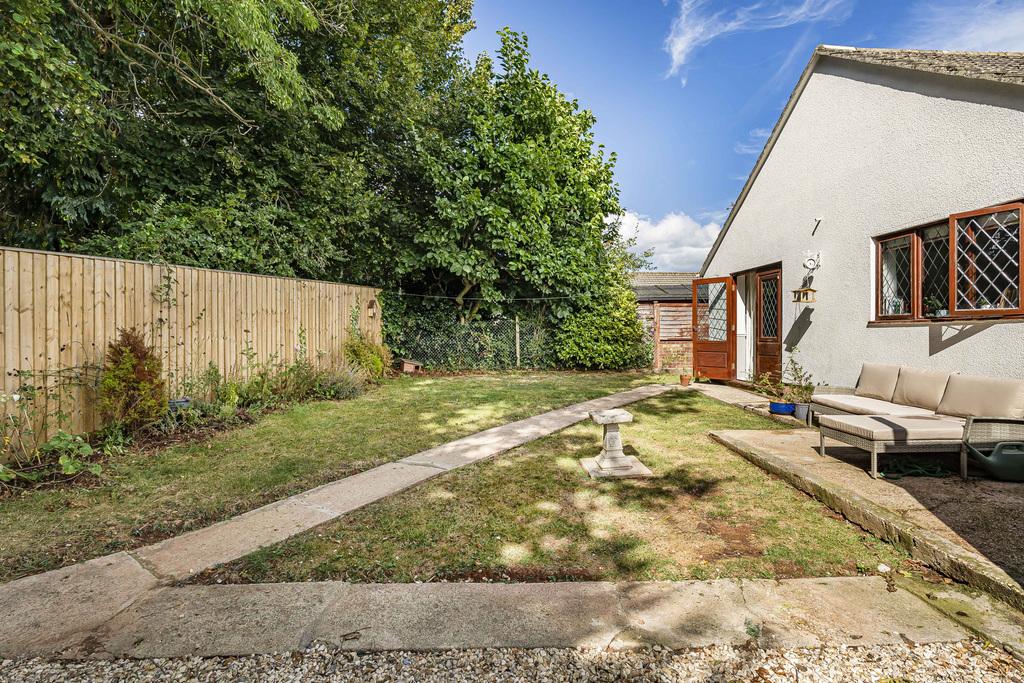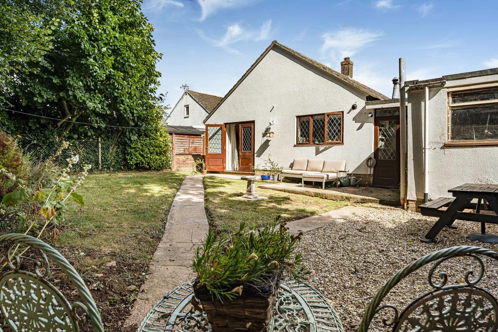 The accommodation comprises entrance hall with access through to a good-sized sitting/dining room, family bathroom, kitchen, two double bedrooms, one of which has a door giving access to the garden. From the kitchen there is a utility/porch which gives access to the garage, rear garden and front of the property.