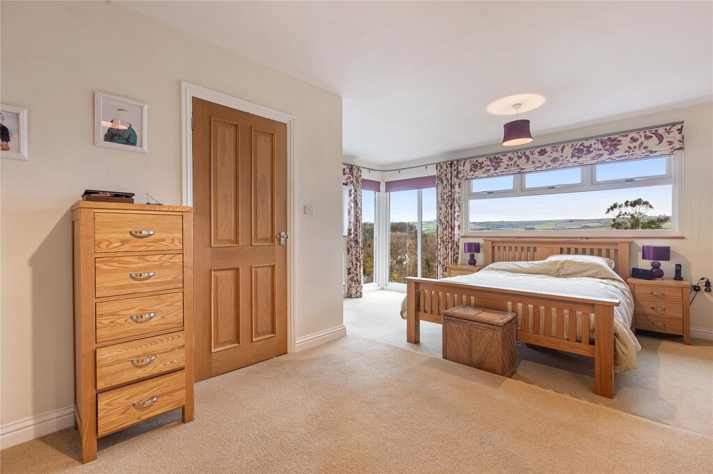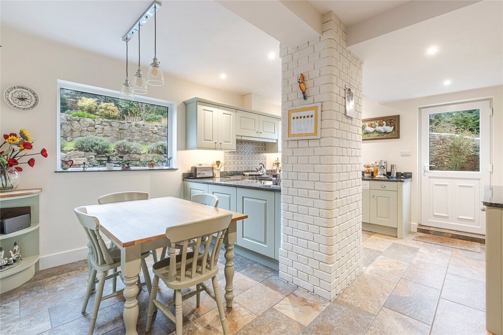 The house has been much improved and extended in recent years and is entered via a lovely sun room which leads into the hallway and the living room which has superb views over the village and is lovely and light with large picture windows and a wood burner. On the other side of the hallway is a good size dining room which will comfortably sit eight. At the rear of the house is a recently refitted utility room (2023) with New Boiler and separate guest WC. The kitchen breakfast room was also completely refurbished in 2021 complete with an electric AGA creating a lovely bright country kitchen. Upstairs the principal bedroom again enjoys fantastic views with floor to ceiling windows a beautifully presented en suite bathroom with under floor heating. There are three further double bedrooms a family shower room and en suite shower room.