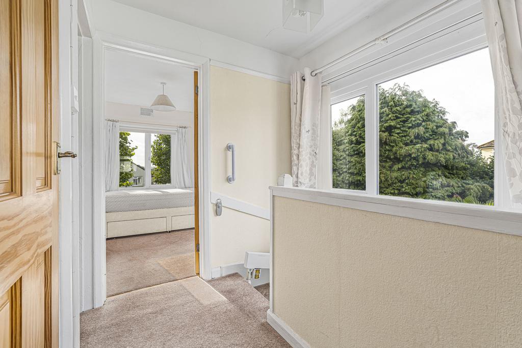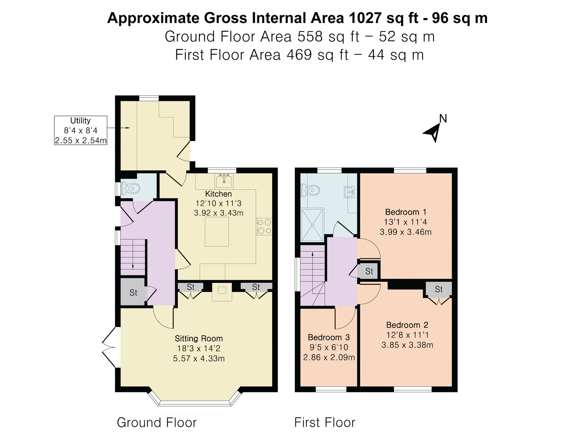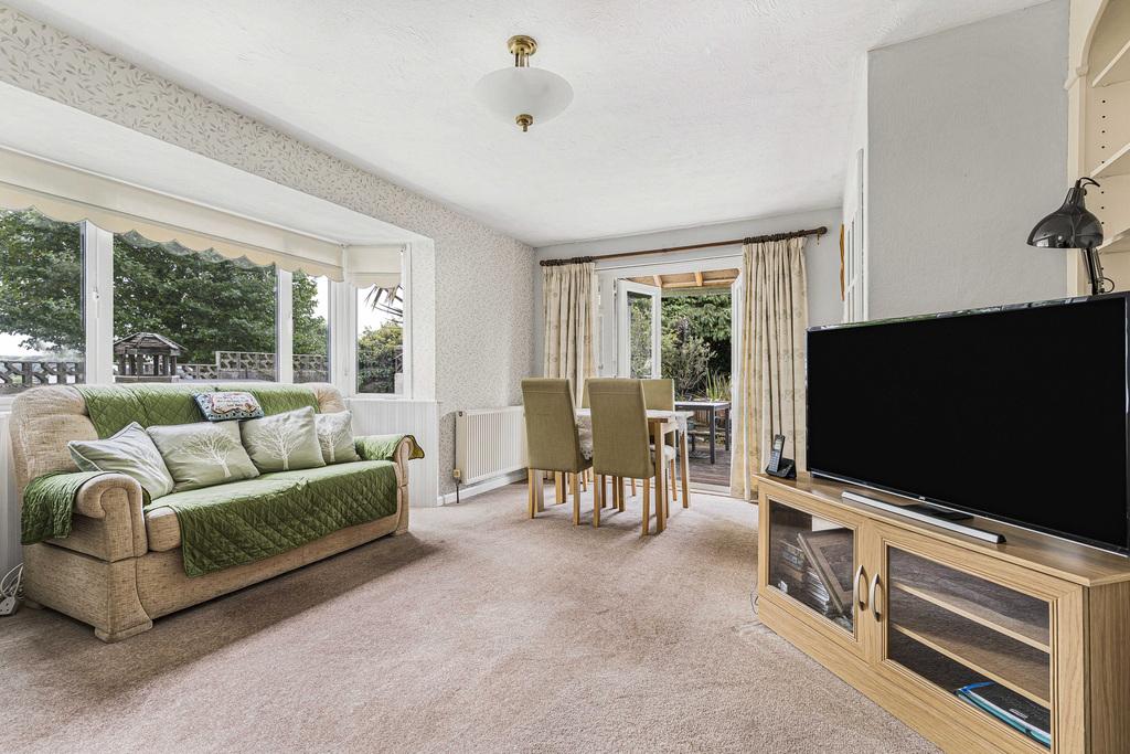 On the ground floor is a guest WC a generous fully fitted Kitchen / Breakfast room and a utility room. The living room is a lovely bright double aspect room with a large bay window with patio doors out onto a decked veranda. Upstairs are two good double bedrooms and a smaller third bedroom and a family bathroom.