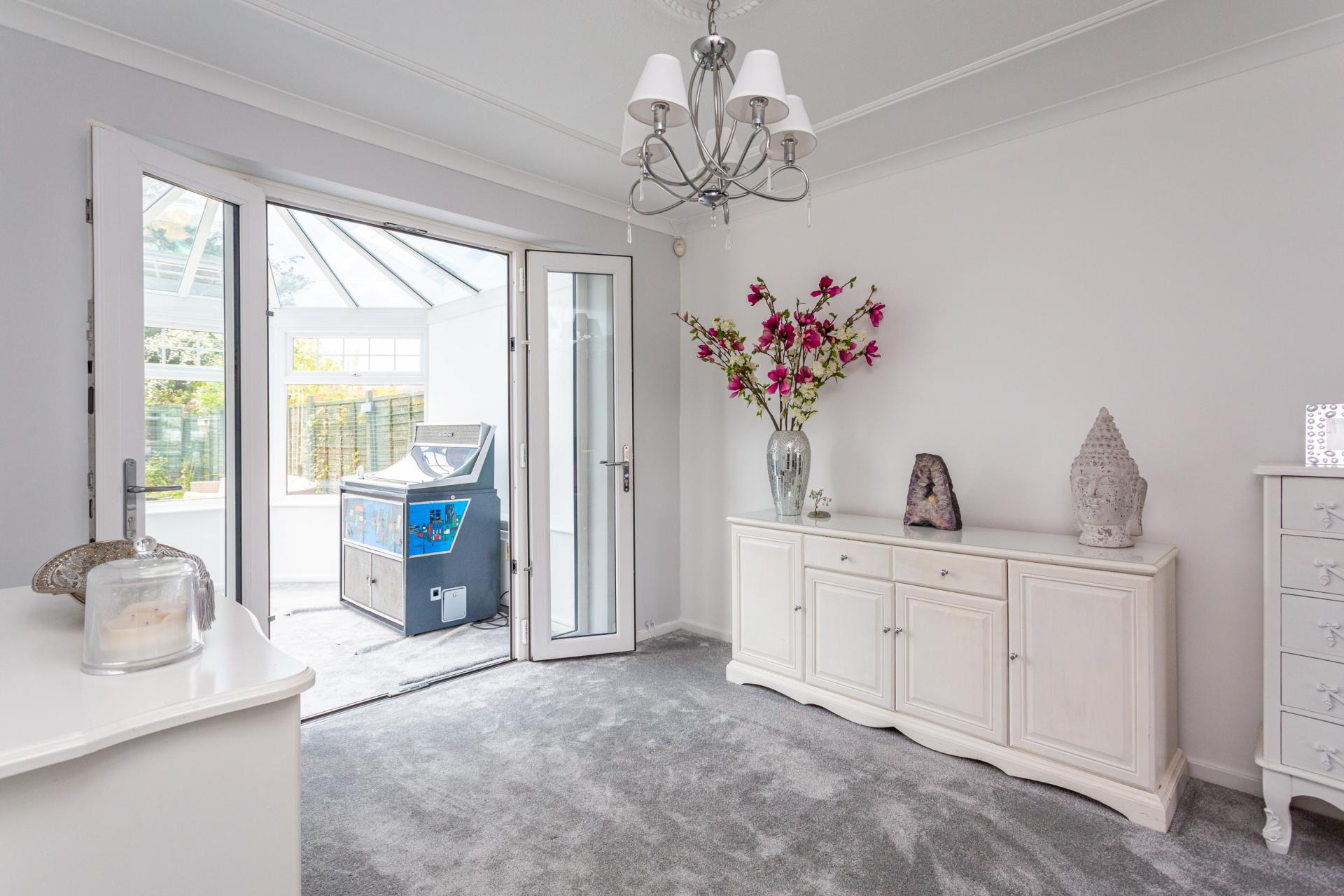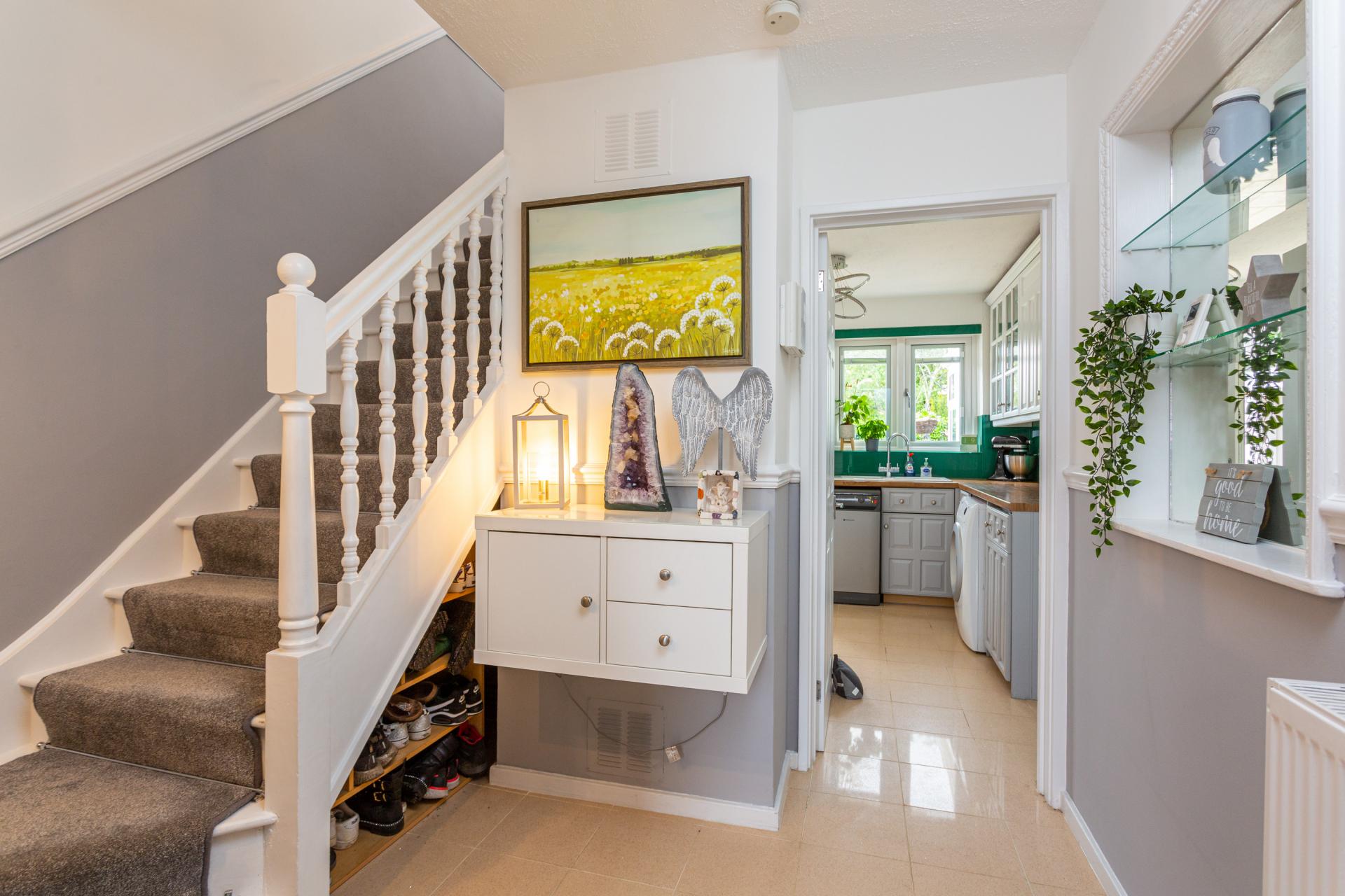The house is approached via a block paved driveway with ample parking provision. The front door leads to a spacious Entrance Hall with tiled flooring and an adjacent Downstairs Cloakroom. There is a through Sitting / Dining Room with a bay window, recessed glass fronted gas fire, attractive ceiling cornice and double doors leading to a Conservatory with access and views over the Garden.
