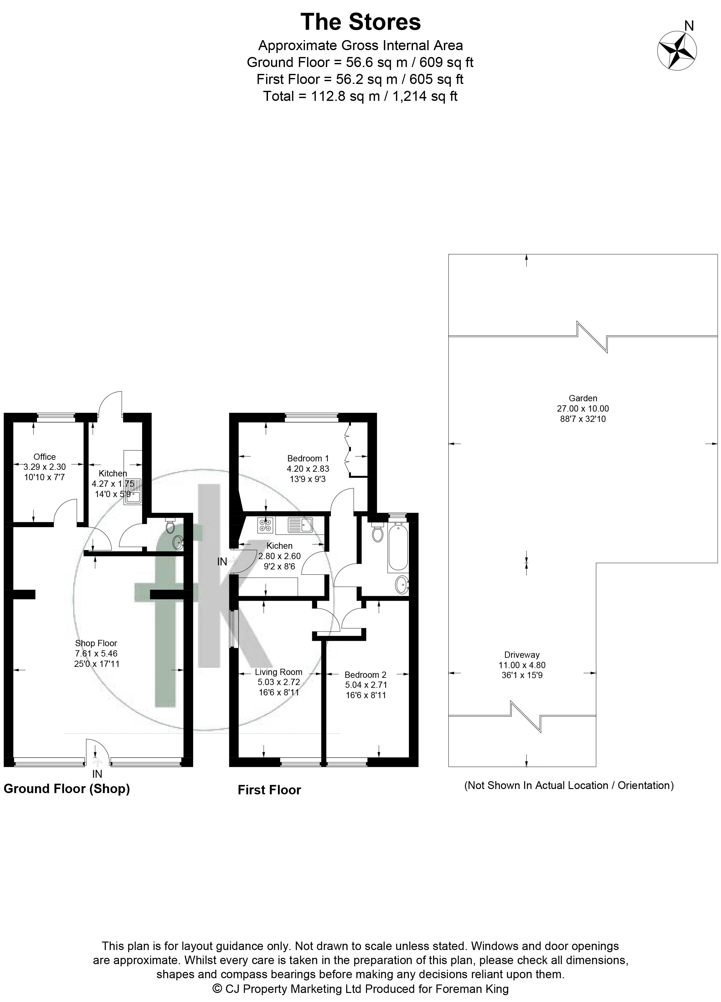 Shop Area 25’ x 17’11 (7.61 x 5.46) Two large street facing windows.