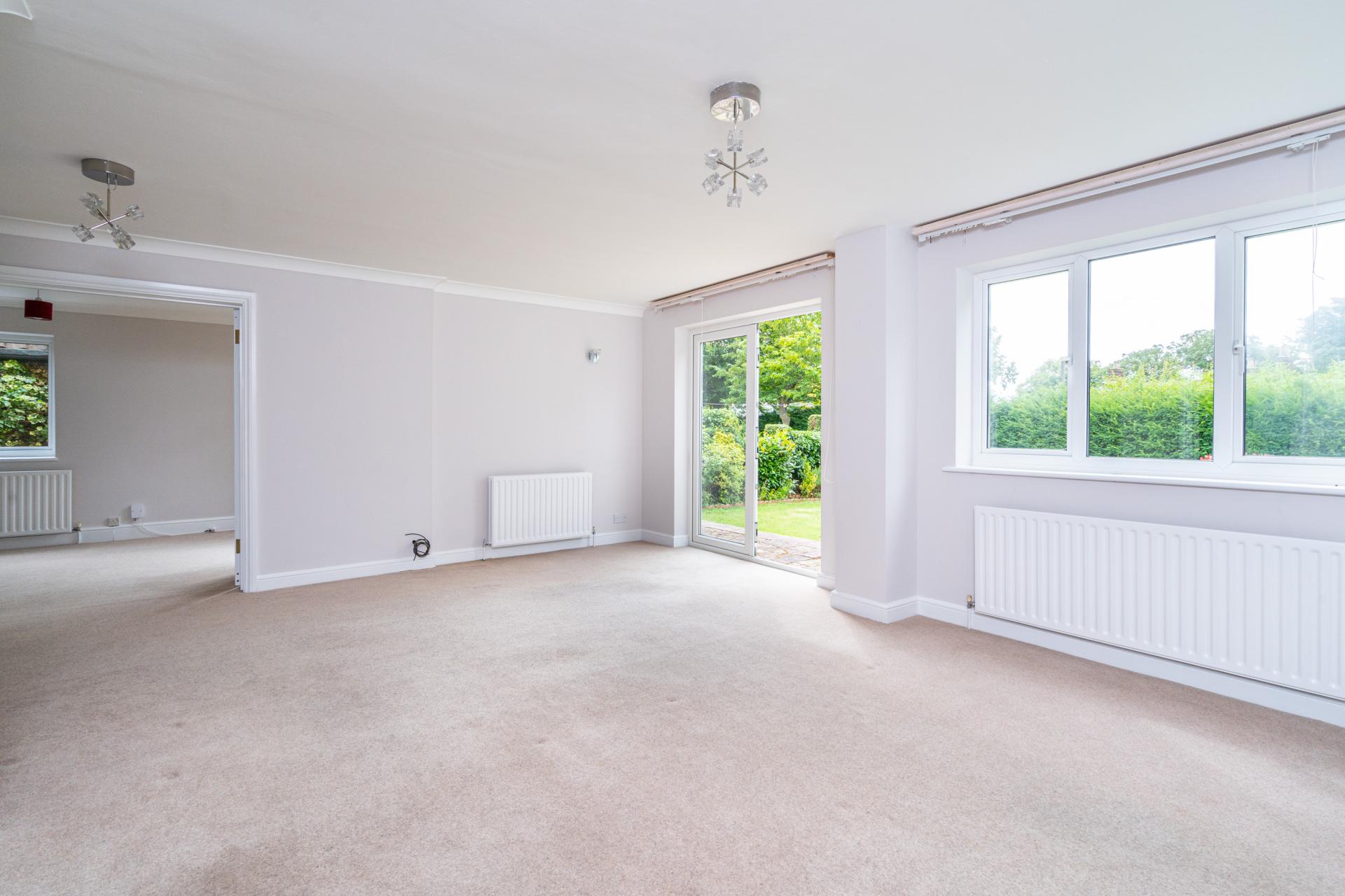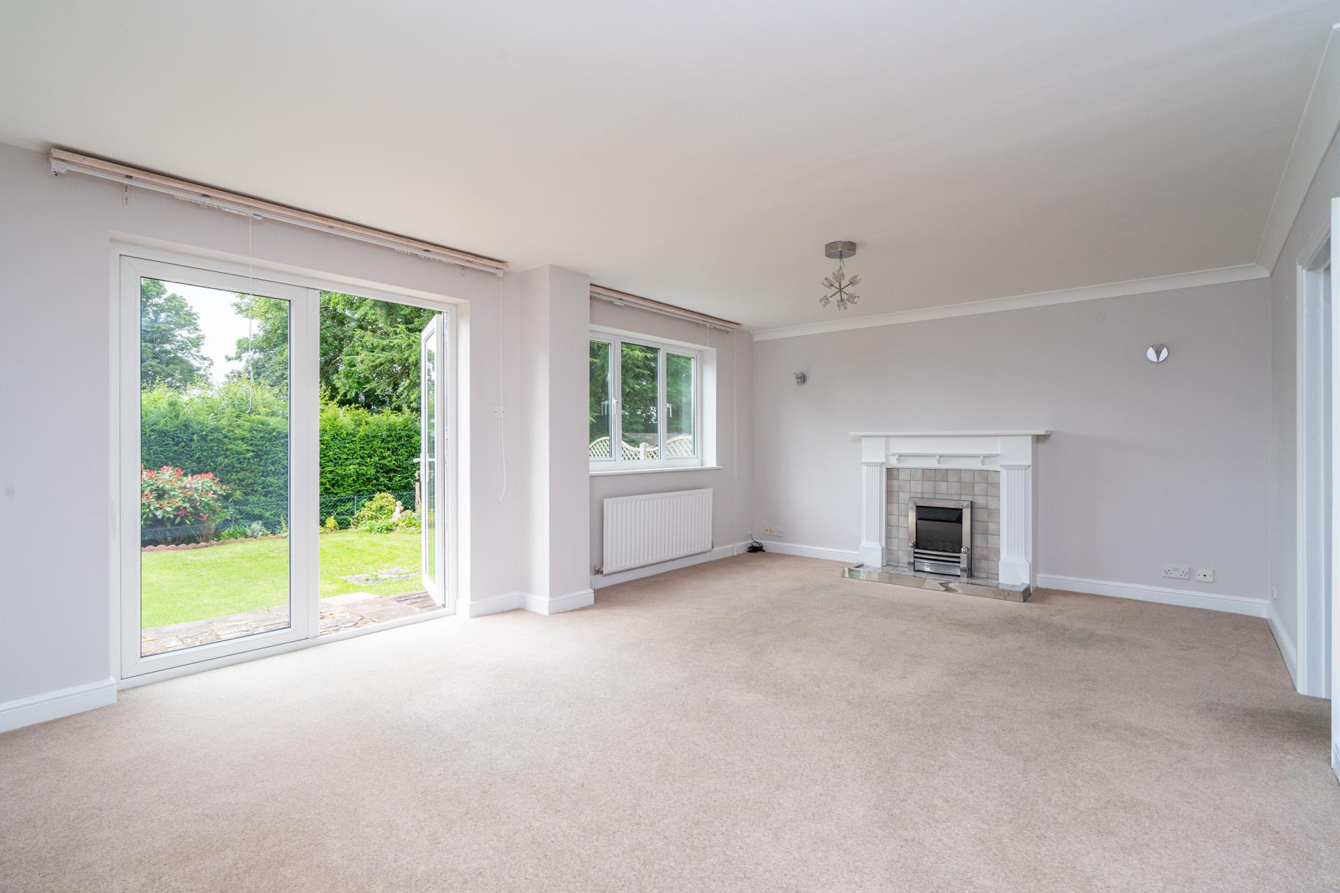 The dual aspect Dining Room overlooks the side of the property and the garden and has double doors opening to the Living Room which is of L shaped design with feature gas effect fireplace, French doors to garden and further doors leading to the utility & garage and back to the hall.