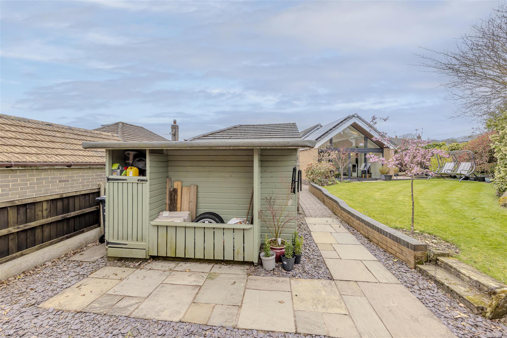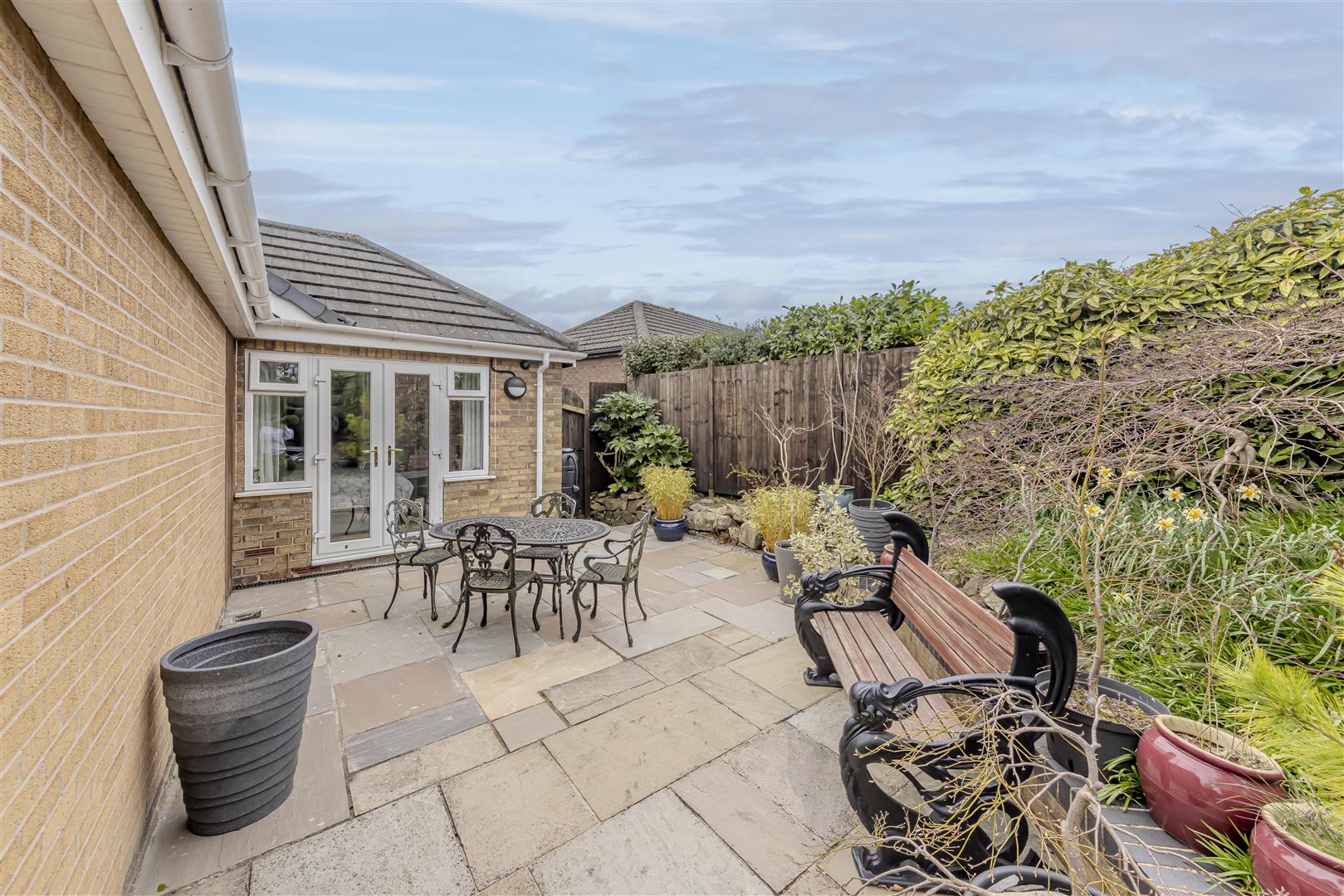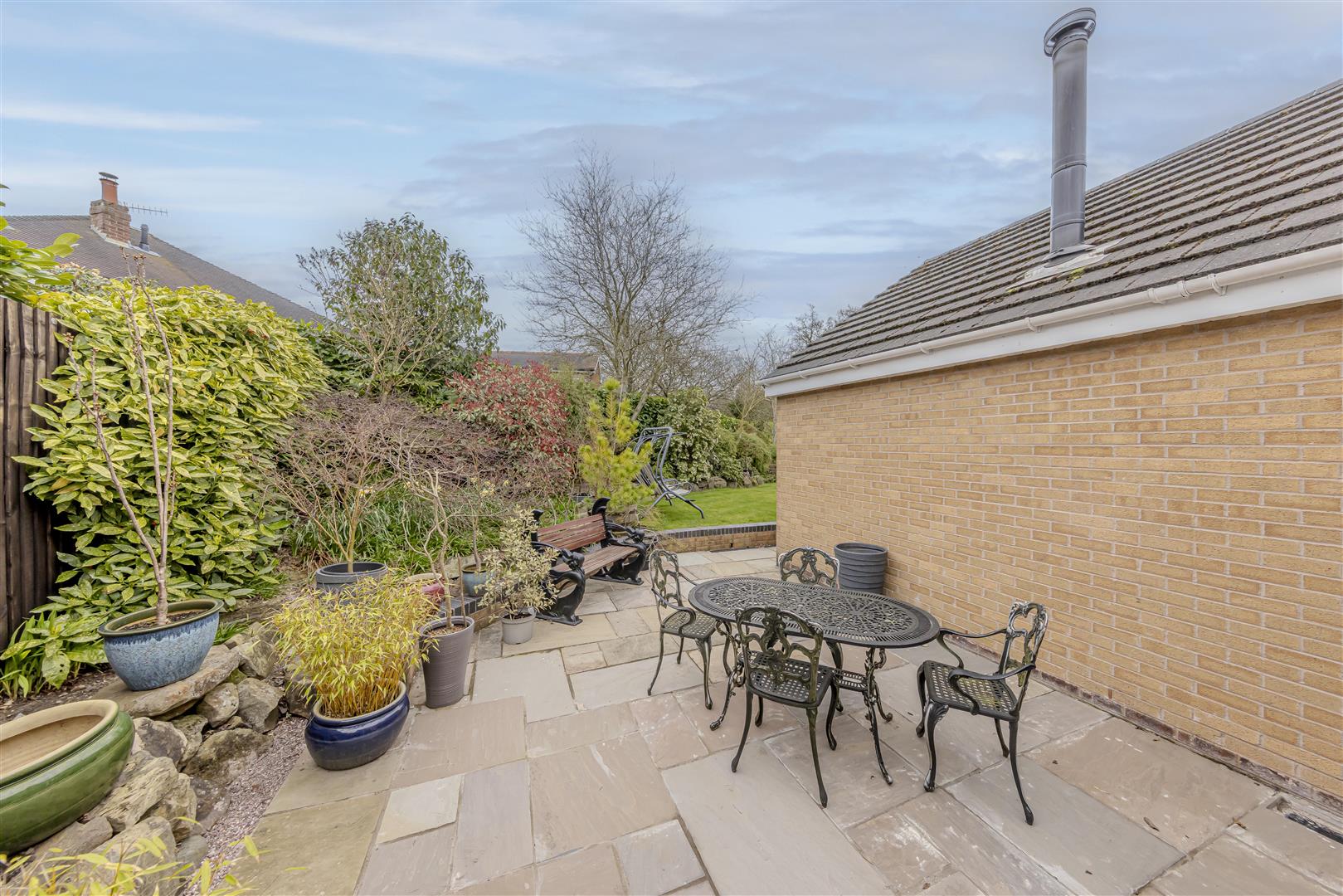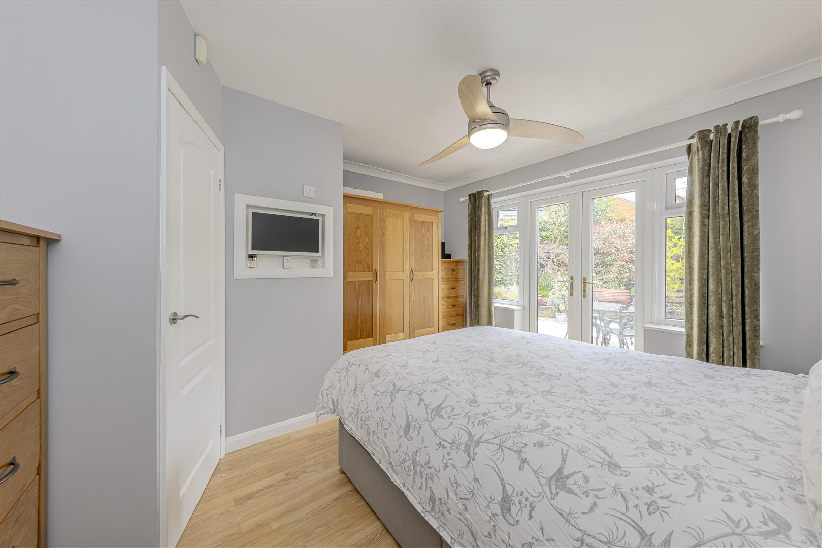 - Vaulted ceilings and full-height glazing overlooking the garden