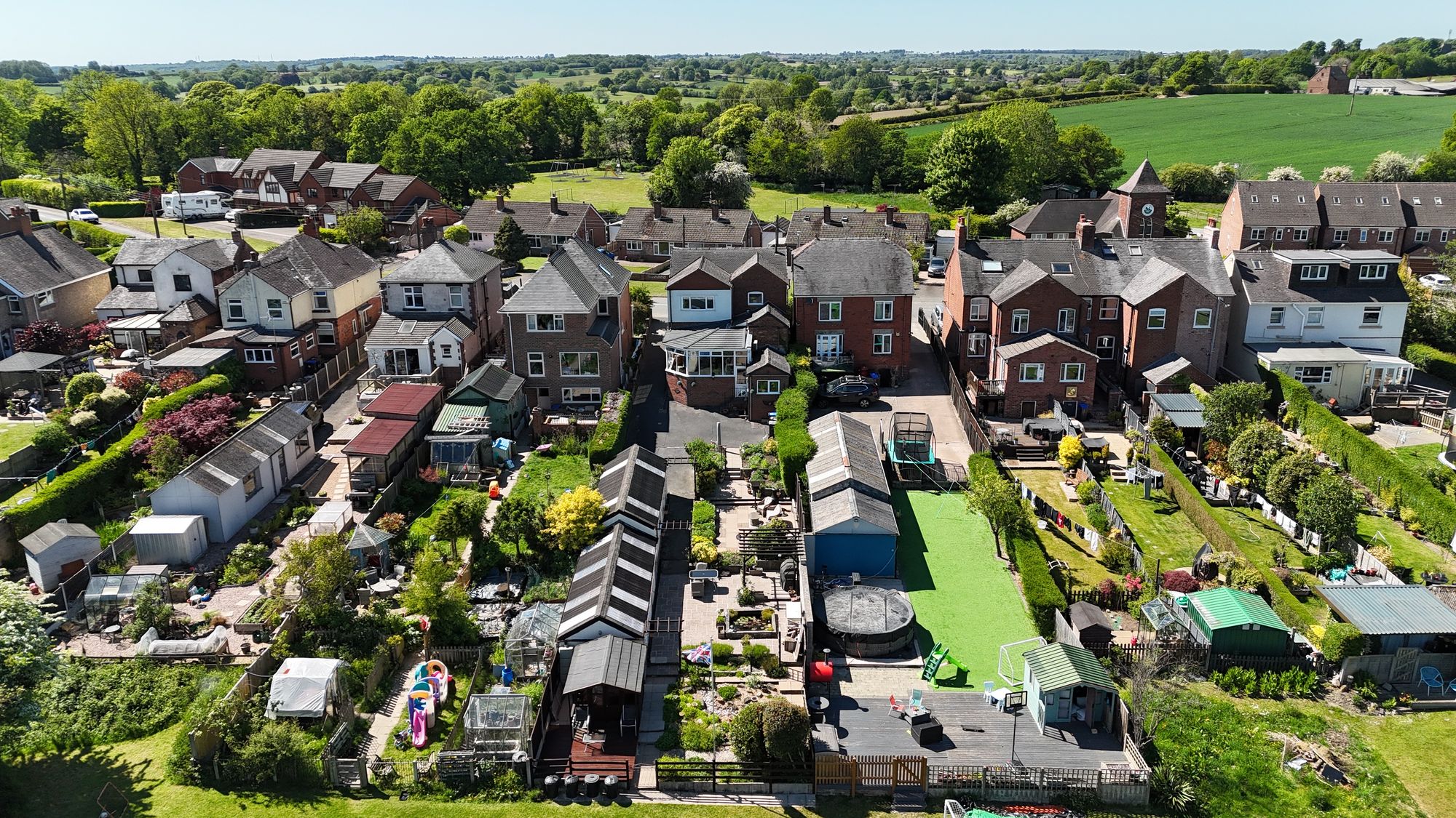 - A beautiful wraparound South facing garden has blooming borders, lush lawns, raised beds and paved seating areas.