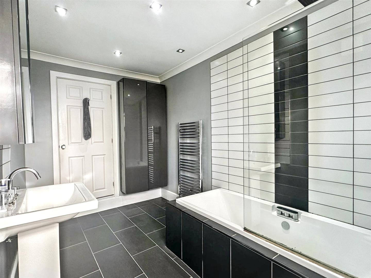 - Stylish family bathroom, complete with a modern suite and rainfall shower