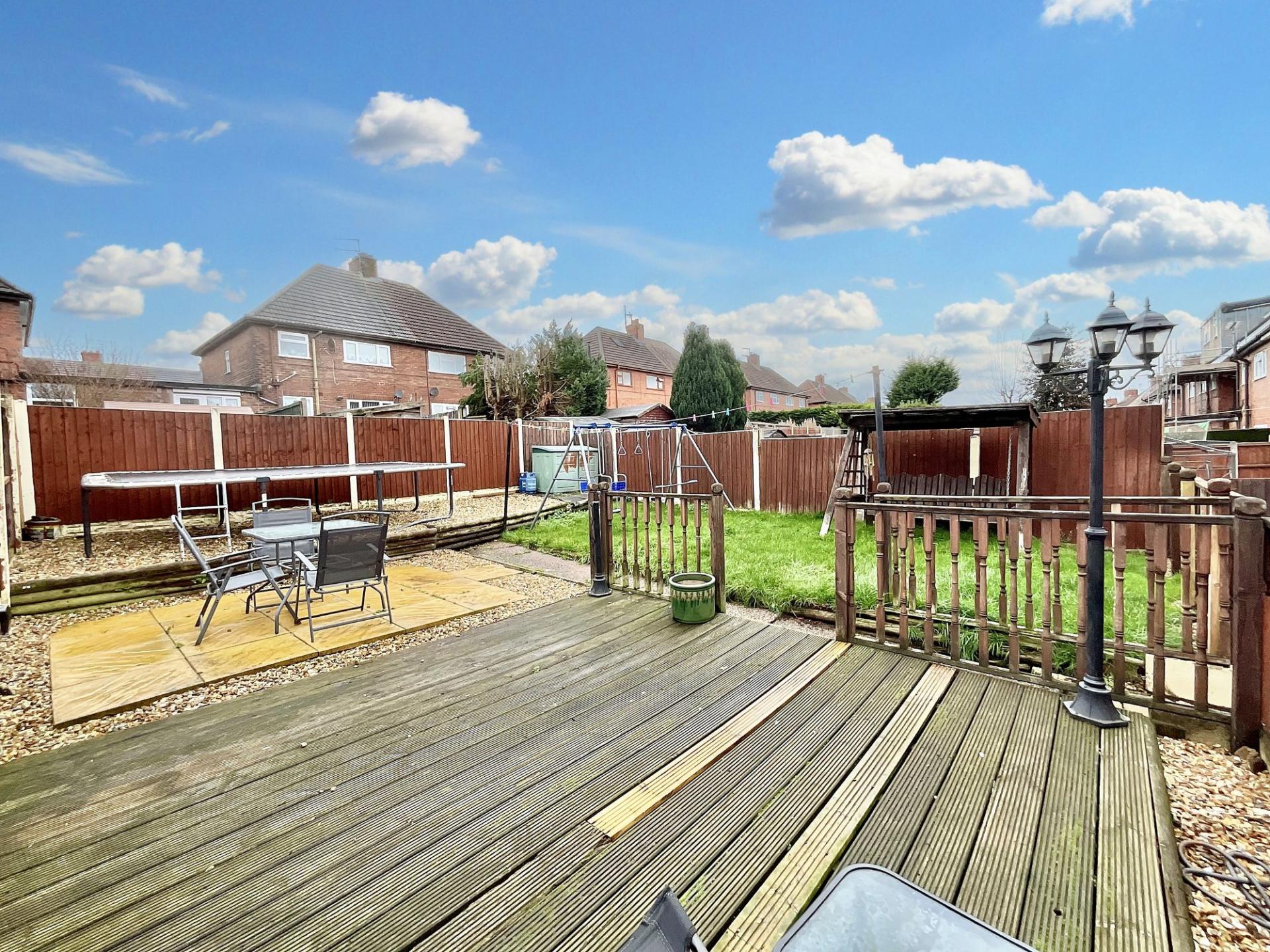 - Multi-tiered garden. Enjoy a ground-level seating area, then head up the steps to a fenced upper level featuring a mix of lush lawn, decking, and gravel.