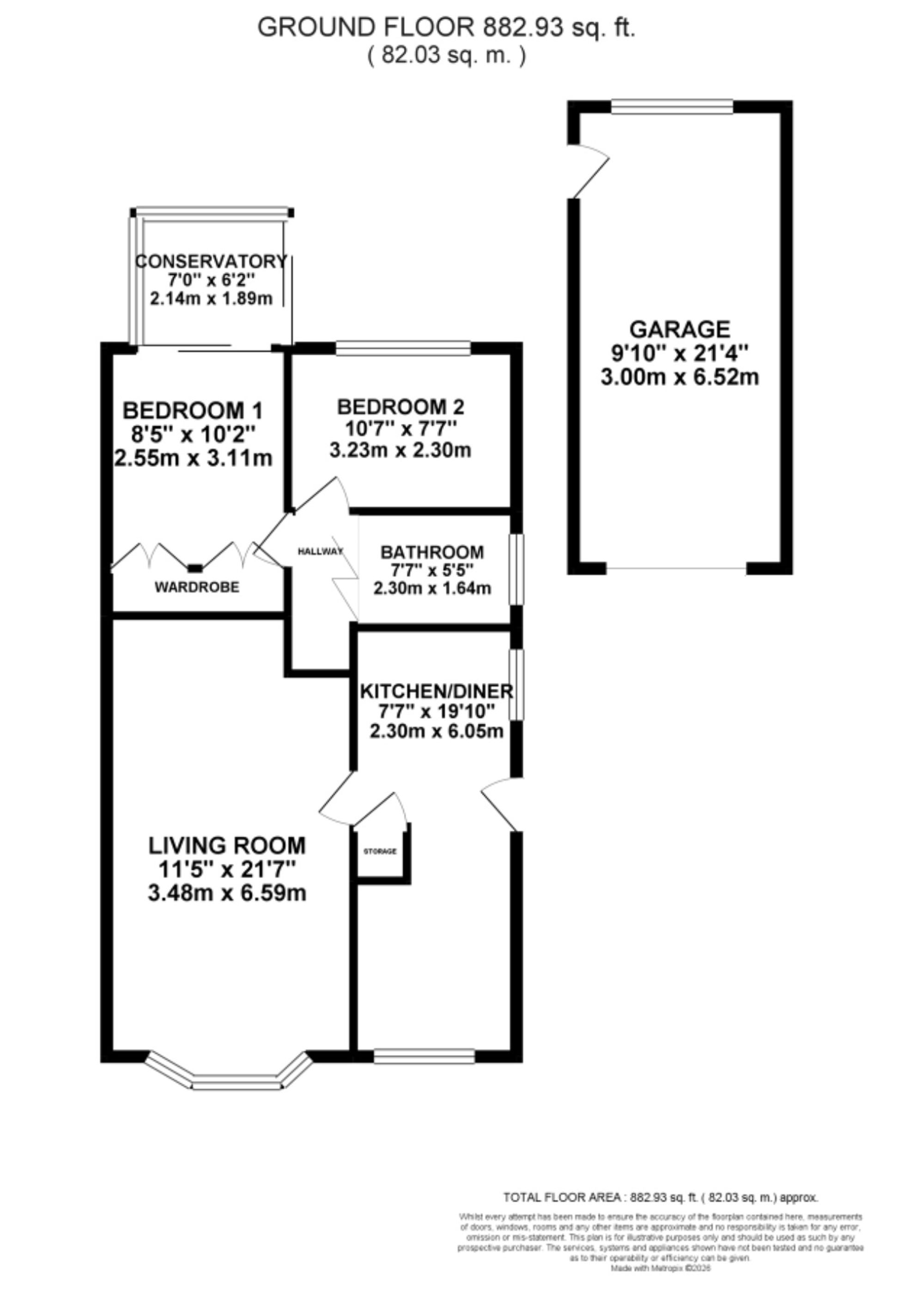 - Two double bedrooms plus a light-filled conservatory.