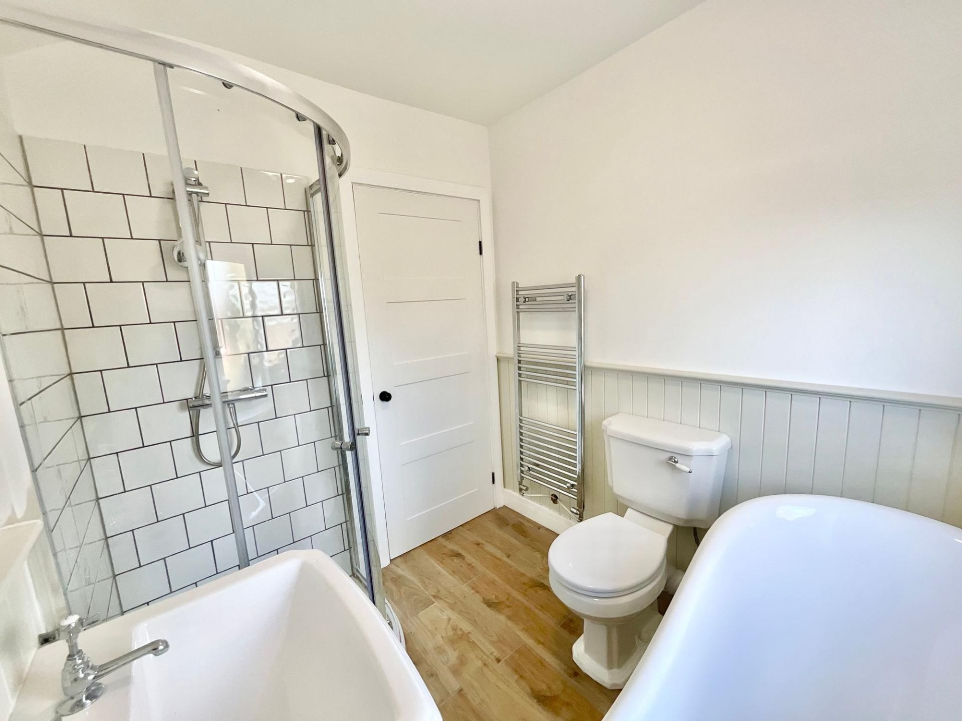 - Upstairs you will find two spacious double bedrooms and one single bedroom offering cupboards for storage and a family bathroom with roll top bath.