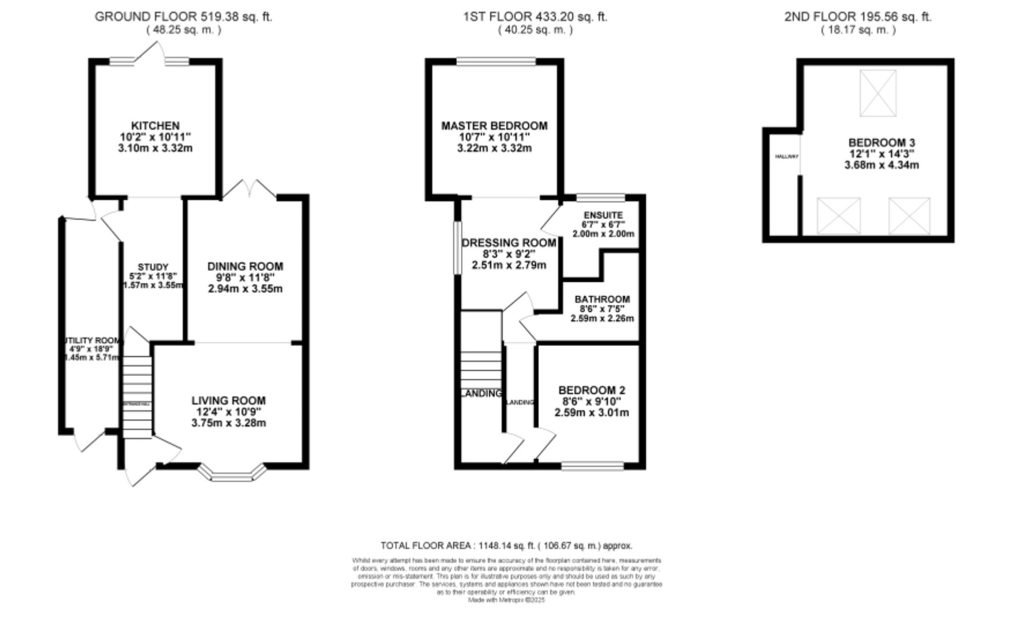 - Master suite with ensuite shower room and dressing room, and a further two doubles.