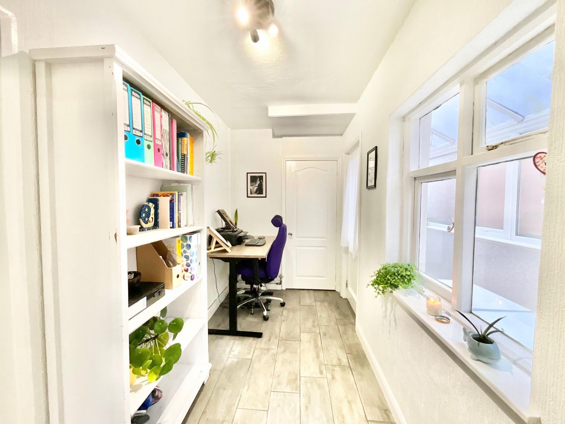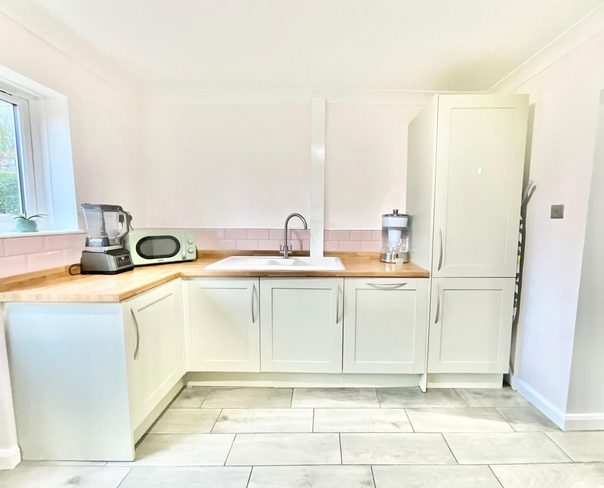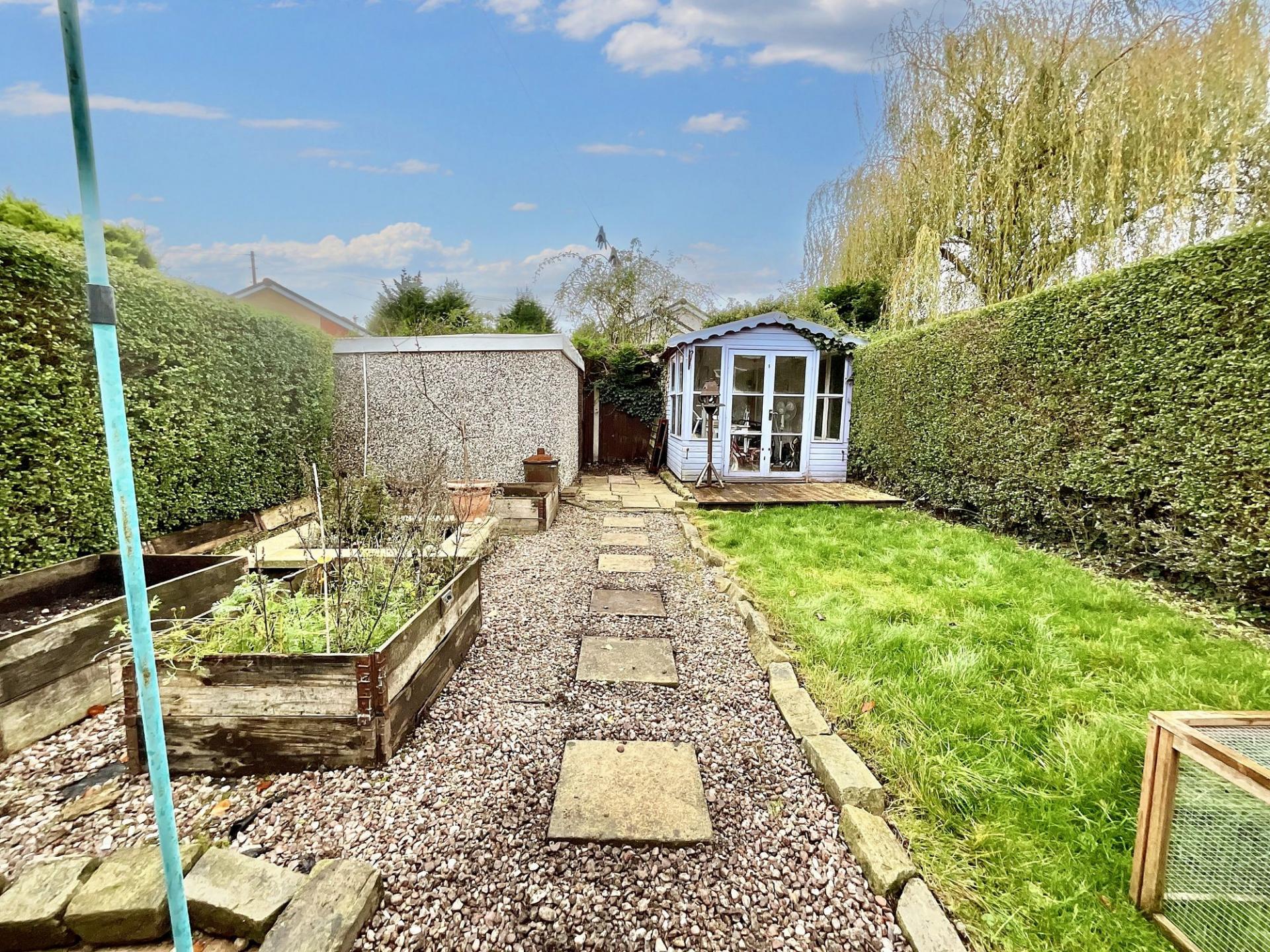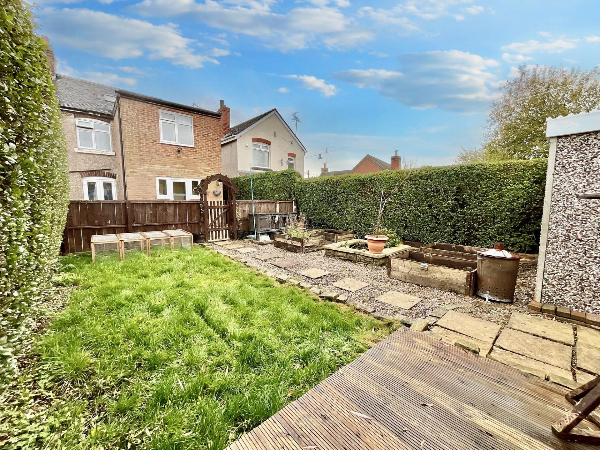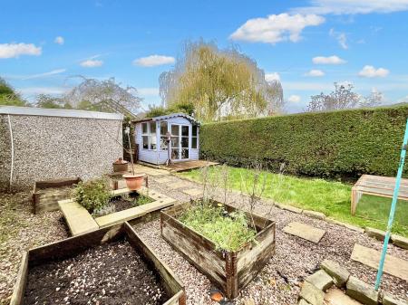 - The garden boasts paved seating areas, a lush lawn, a raised deck, and mature fluffy hedgerows that wrap the space in privacy. Thoughtful vegetable beds add an extra touch of home-grown charm.
