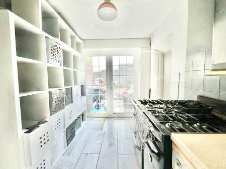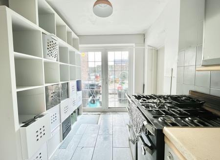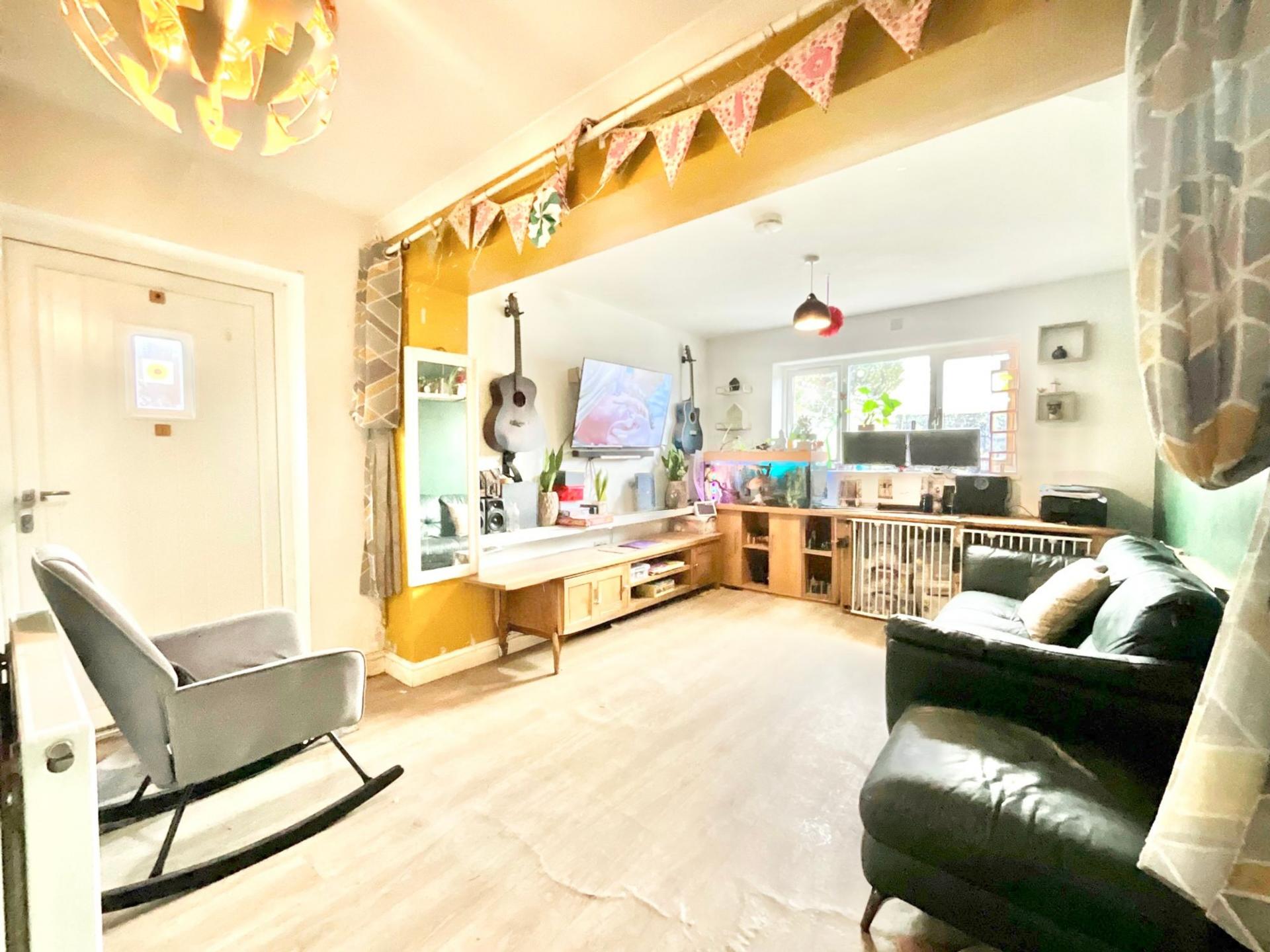 - Spacious living accommodation, including a living room, a galley kitchen with wood-effect units, and double-glazed doors opening to the garden.