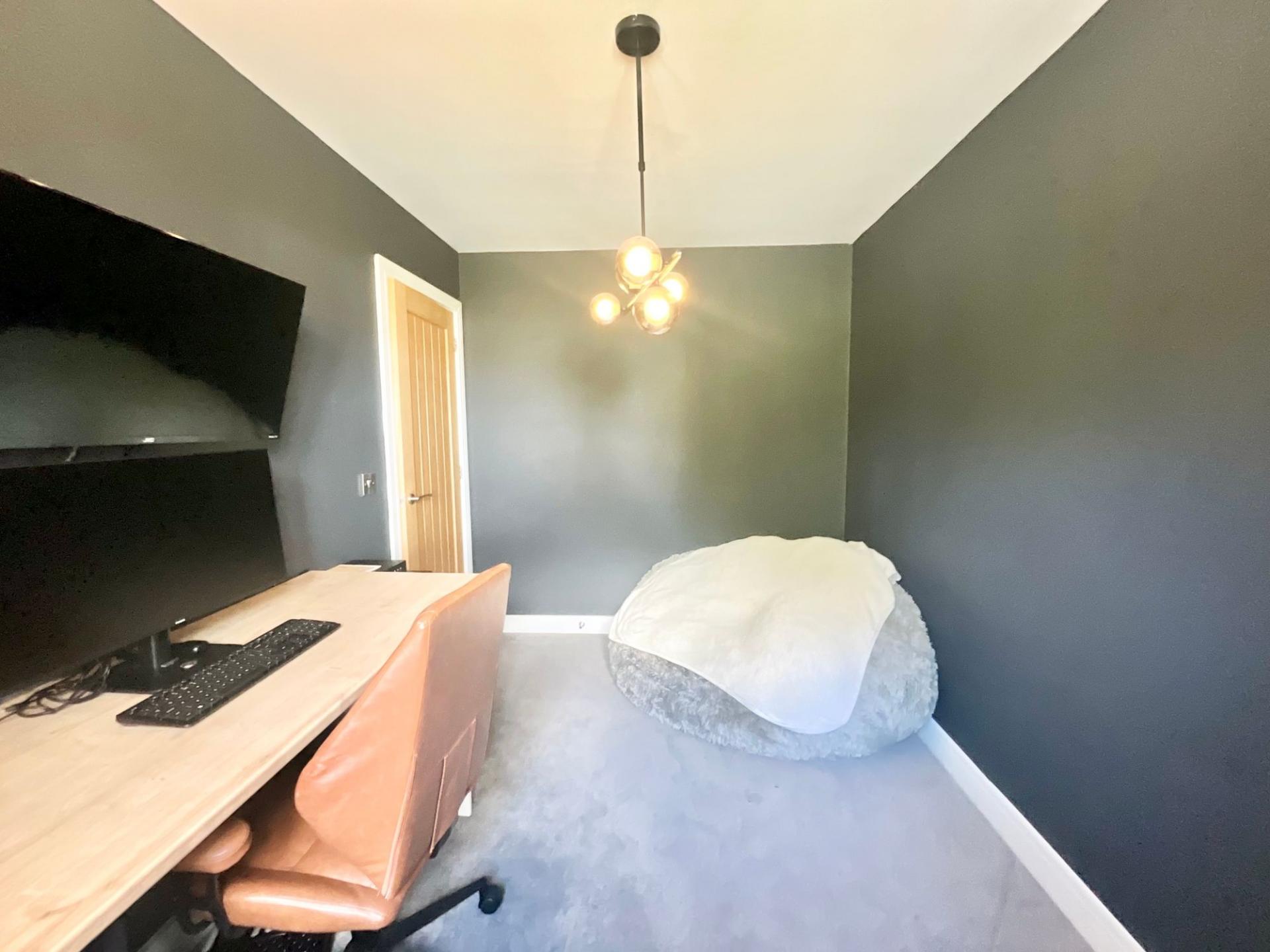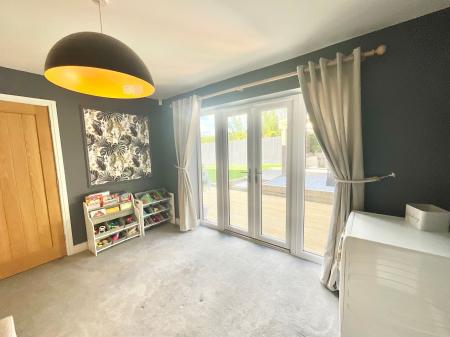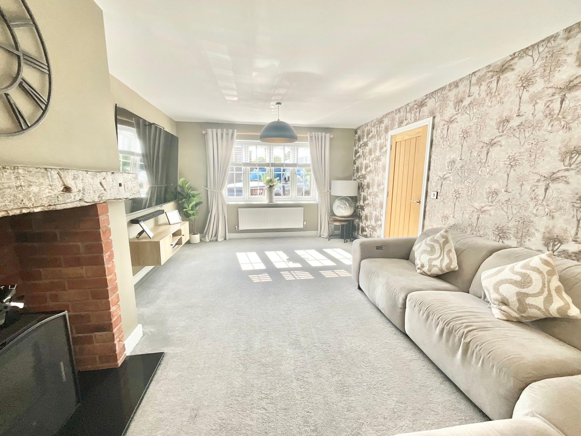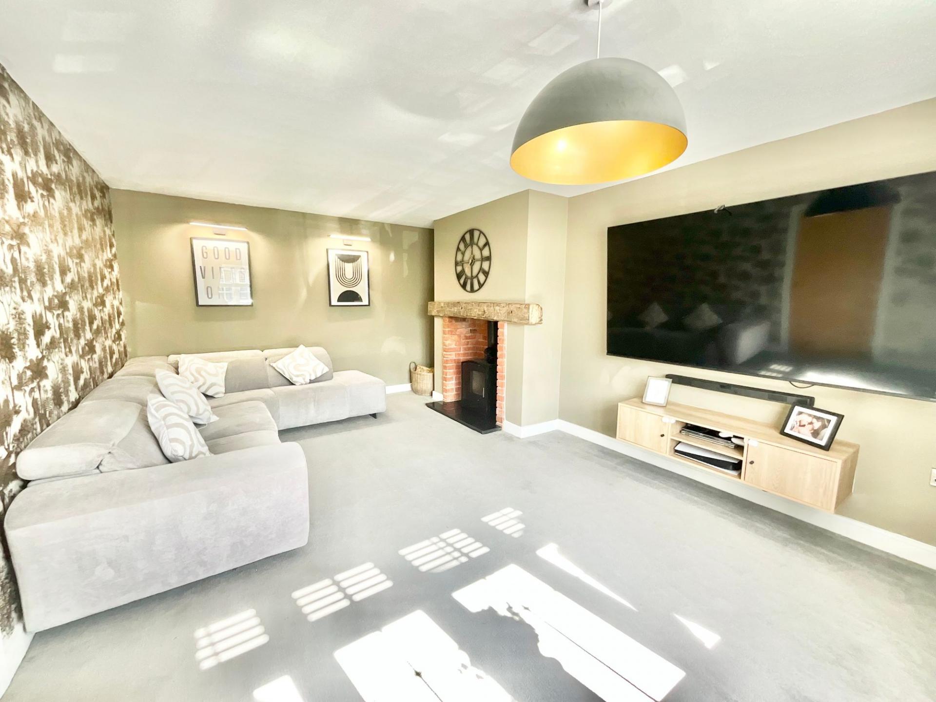 - The lounge features a log burner set in a feature exposed brick fireplace topped with a wooden beam. This room is spacious and bright, perfect for relaxing.