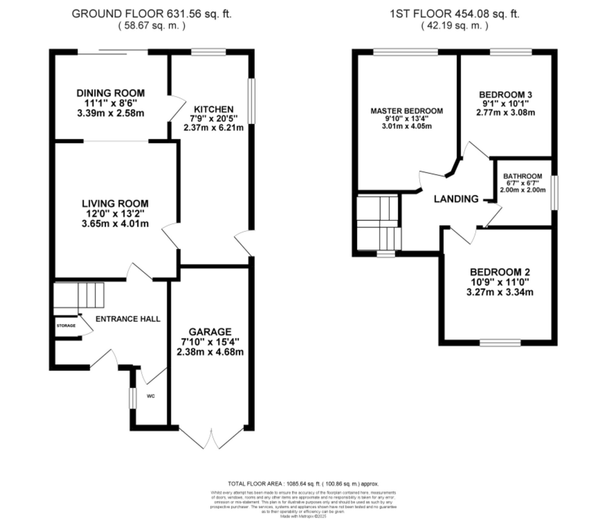 - Three Generous Double Bedrooms – including a Master with fitted wardrobes and dressing table.
