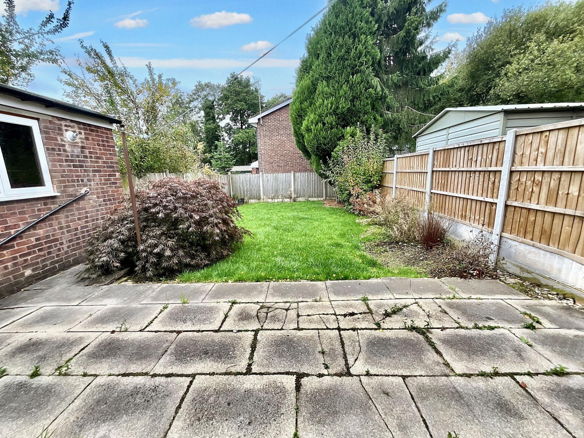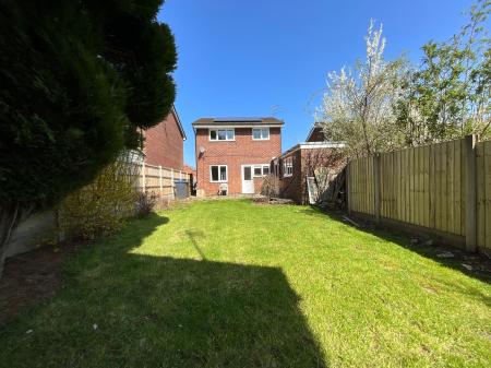- A fenced south facing garden a perfect mixture of lush green lawn and patio bordered with mature shrubs.