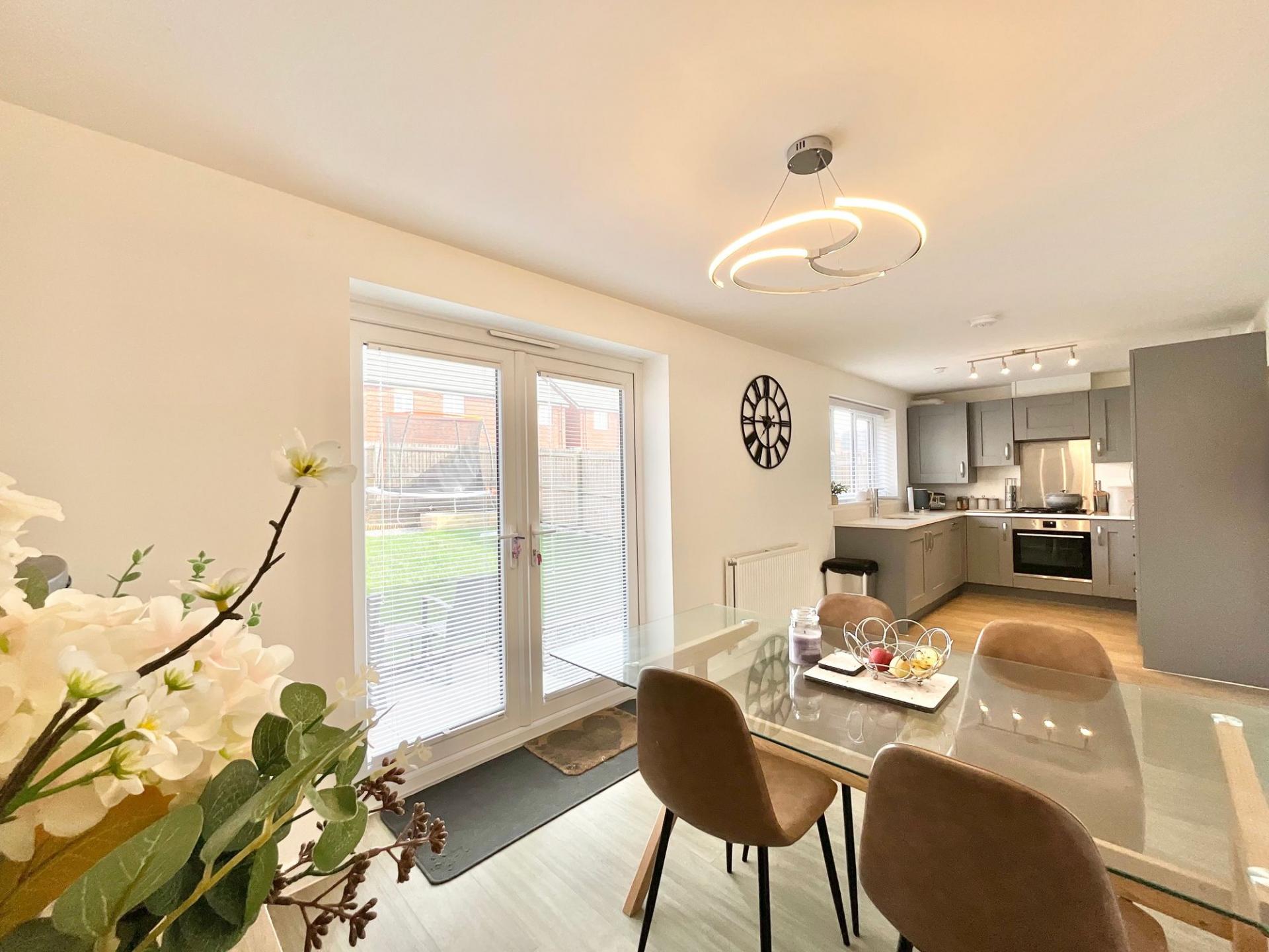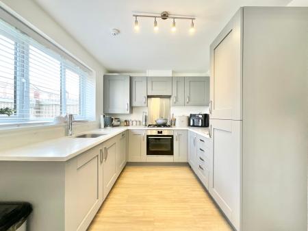 - Sunny-Side Social Kitchen! A cracking open-plan kitchen-diner with grey shaker cabinets and sleek white worktops, perfect for cooking up family favourites.