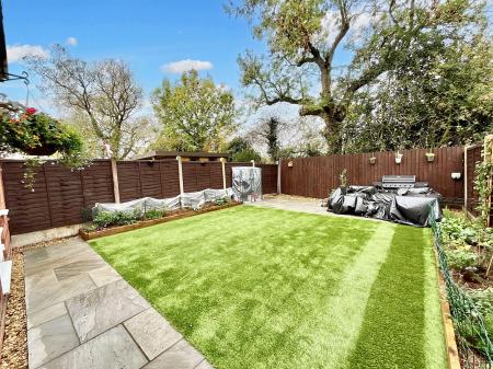 - The garden is fenced and beautifully landscaped featuring artificial lawn, paving and planting borders with mature shrubs.
