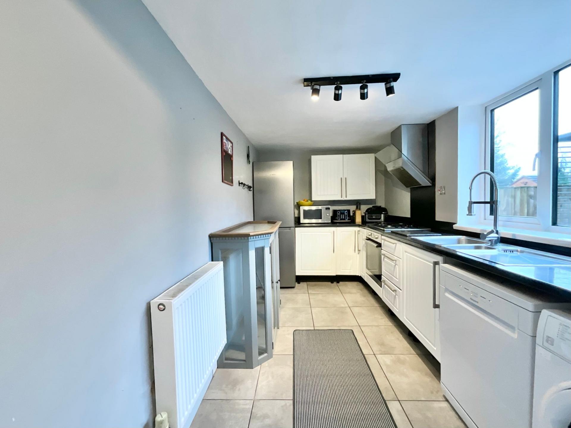 - C — Contemporary Kitchen & Dining Space A modern galley kitchen with ample storage, granite-effect worktops, and space to entertain.