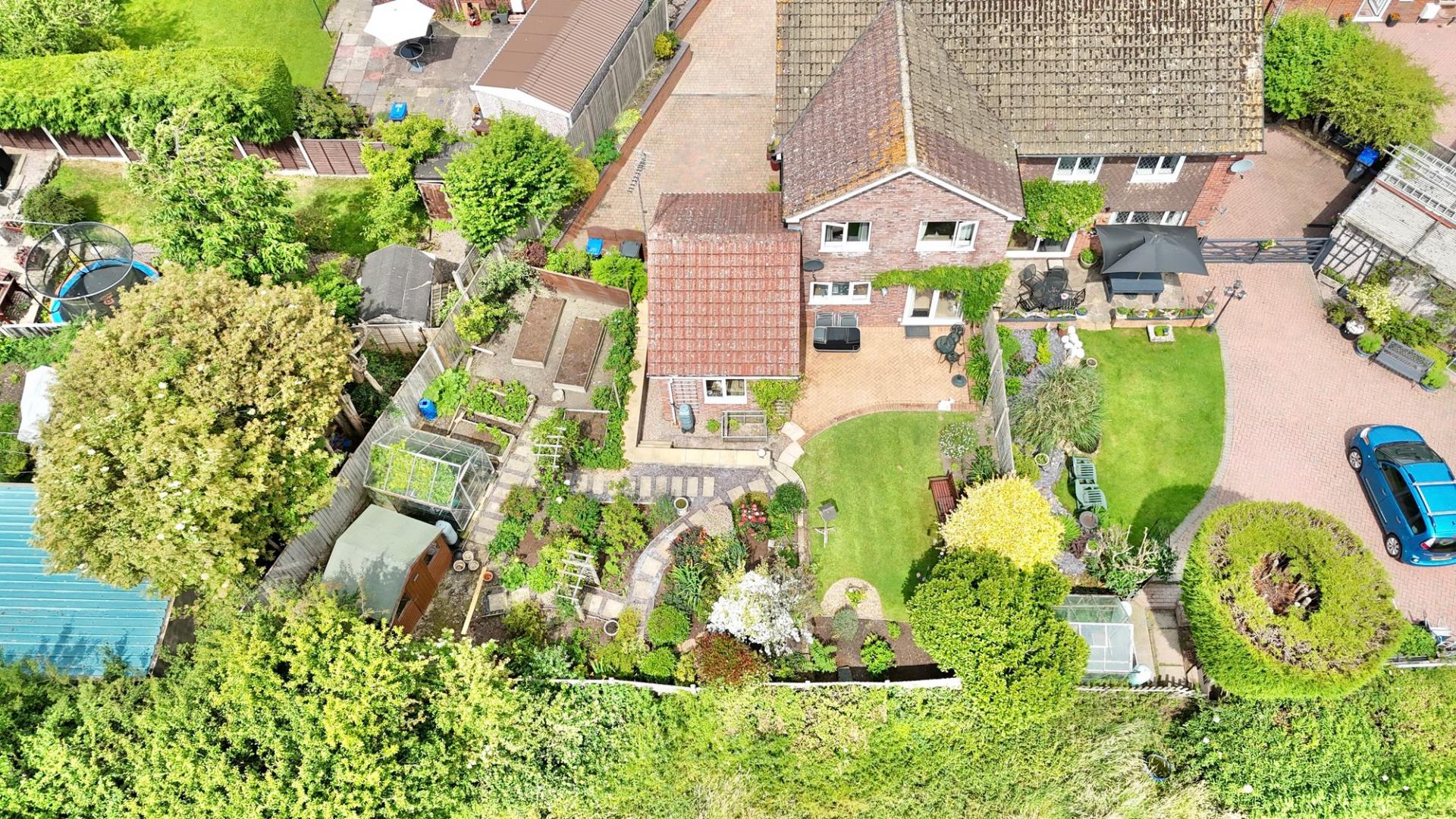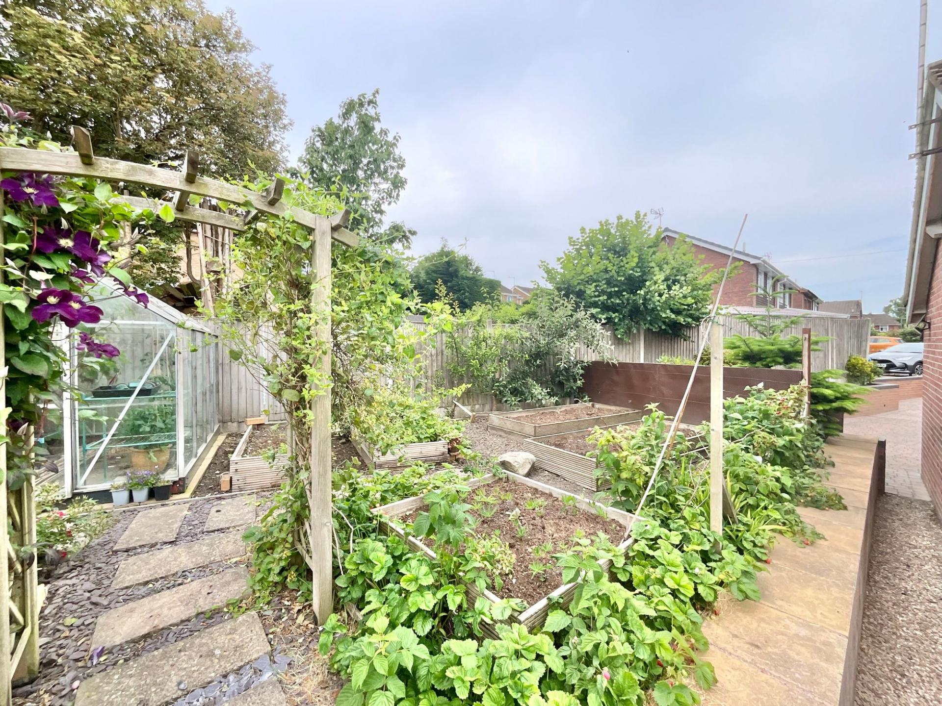 - Mr McGregors garden but better.. a South facing garden with beautiful fruit/veg boxes, mature shrubs and flowers that sit between weaving pathways, a lush lawn with crisp borders and seating area.