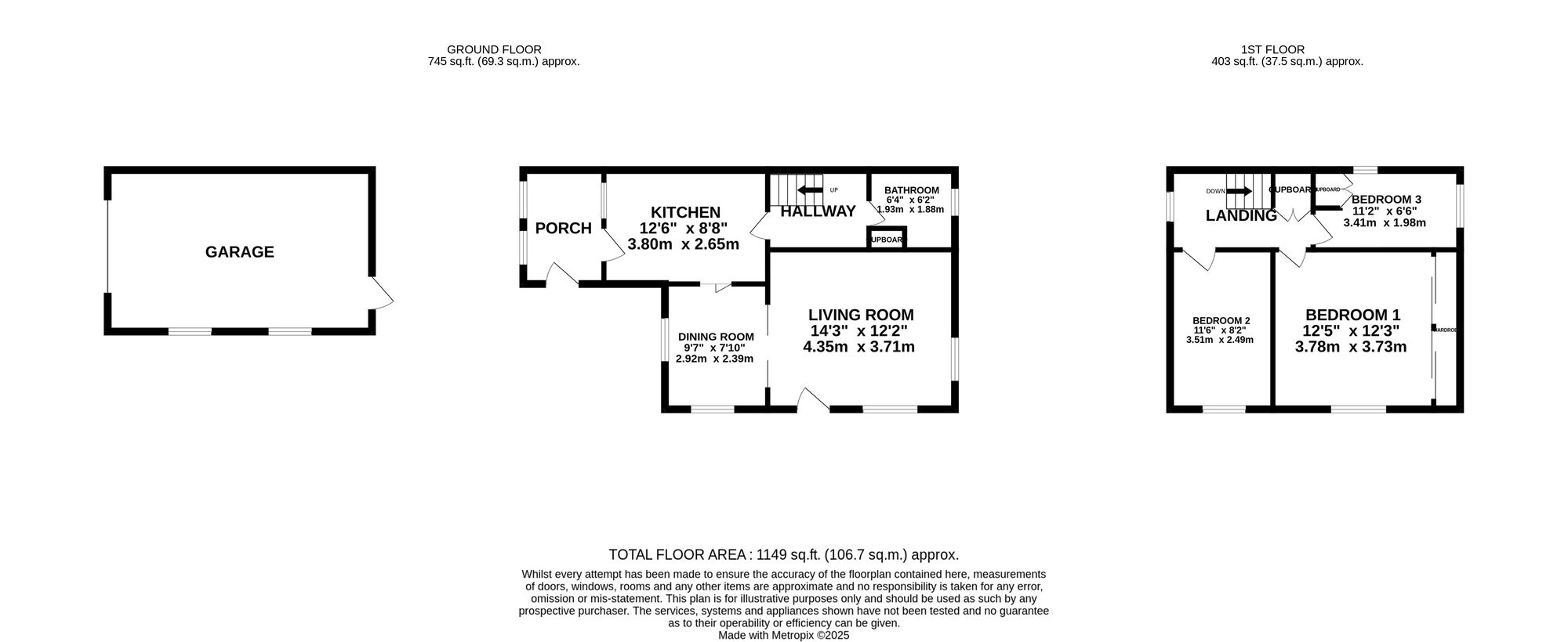 - Three bedrooms on the top floor with fitted cupboard space to two of the three bedrooms.