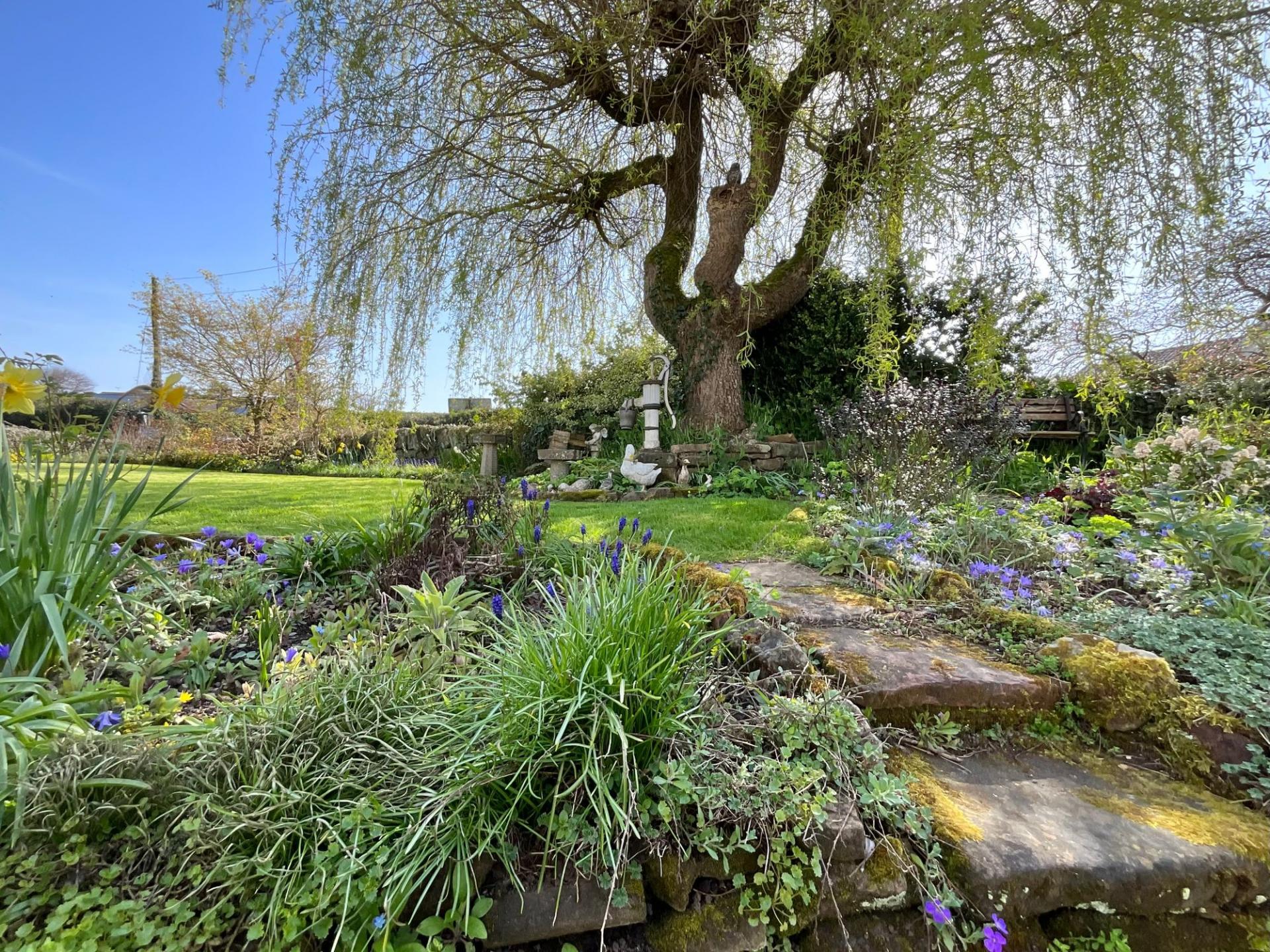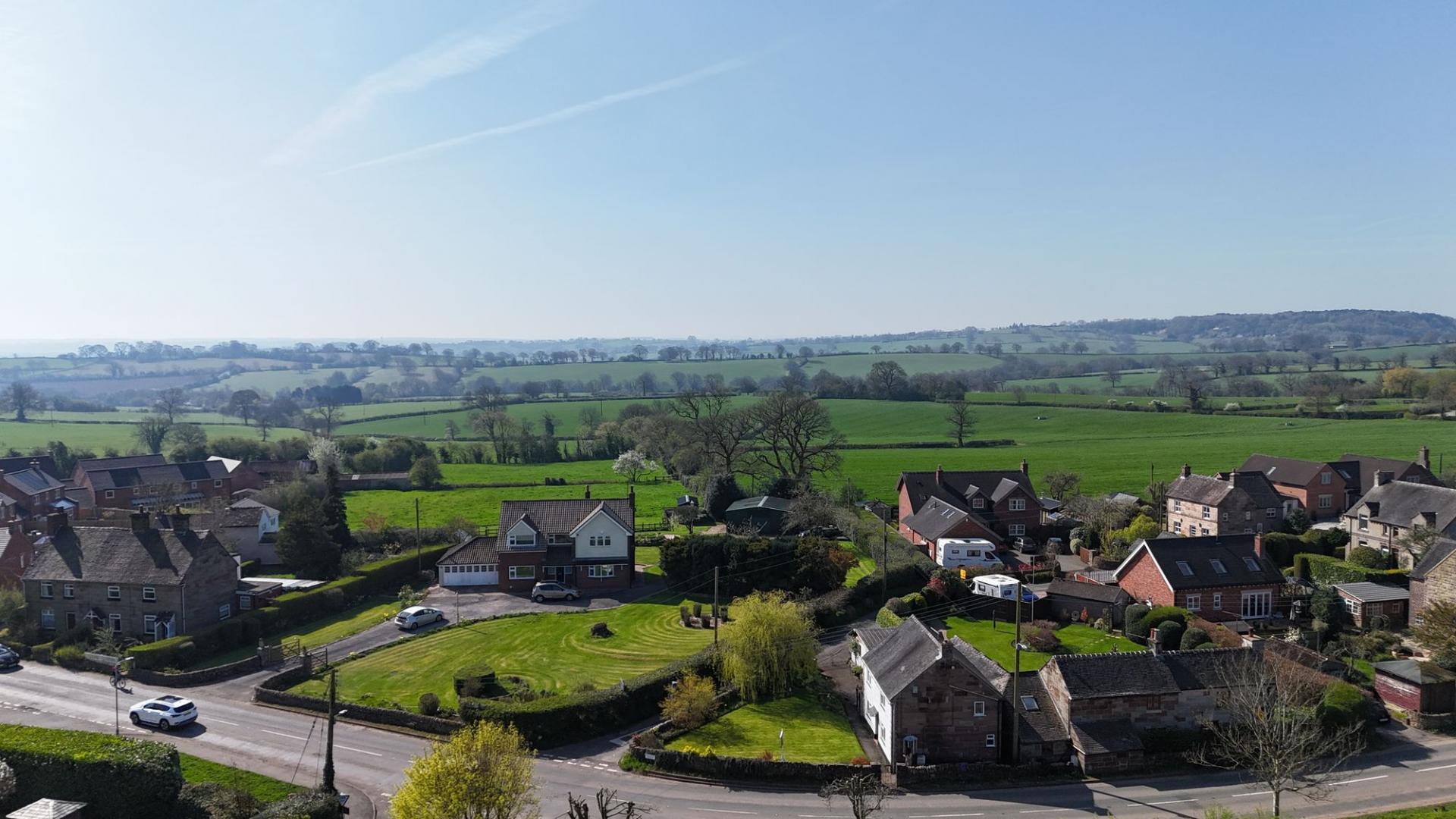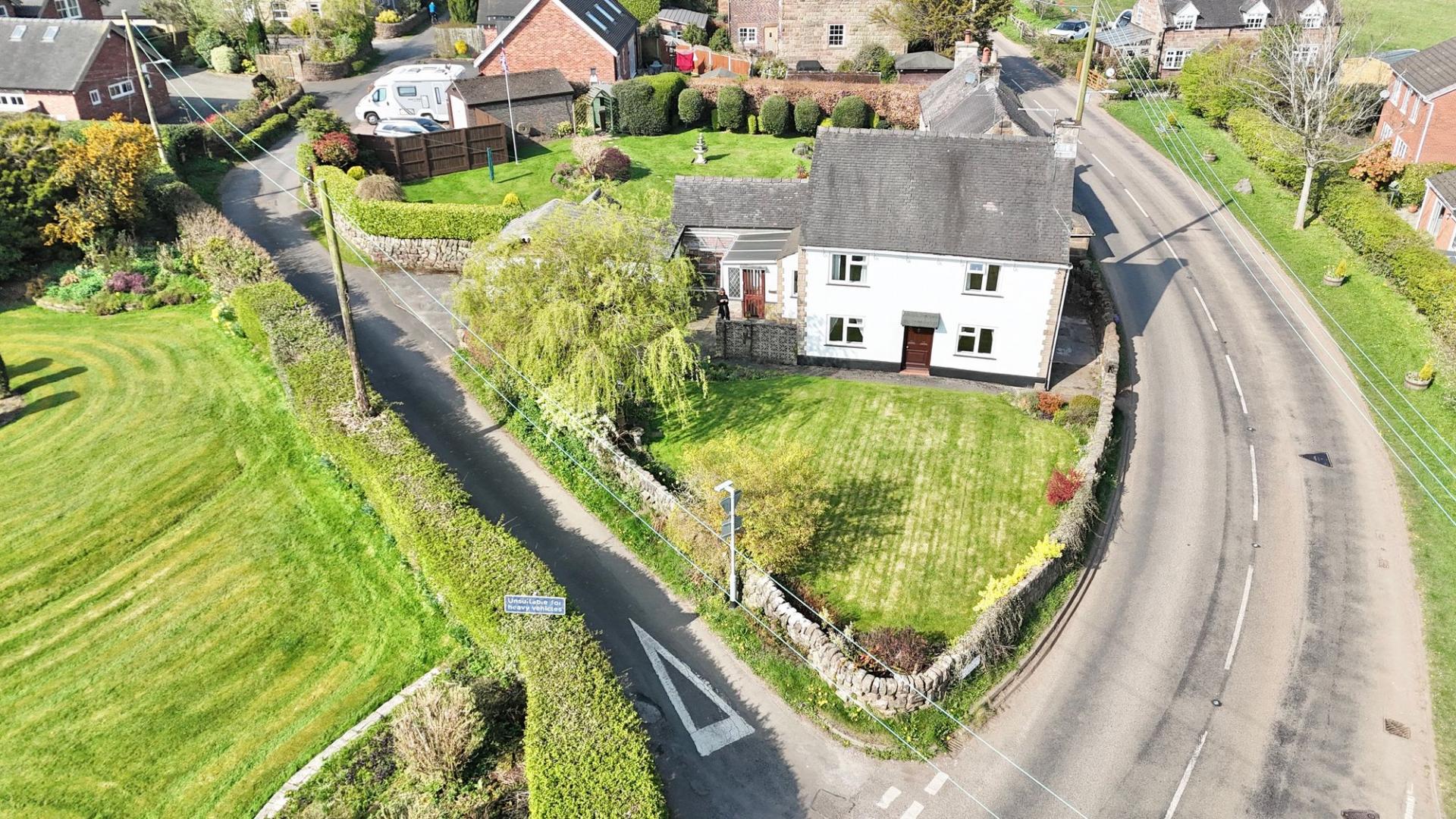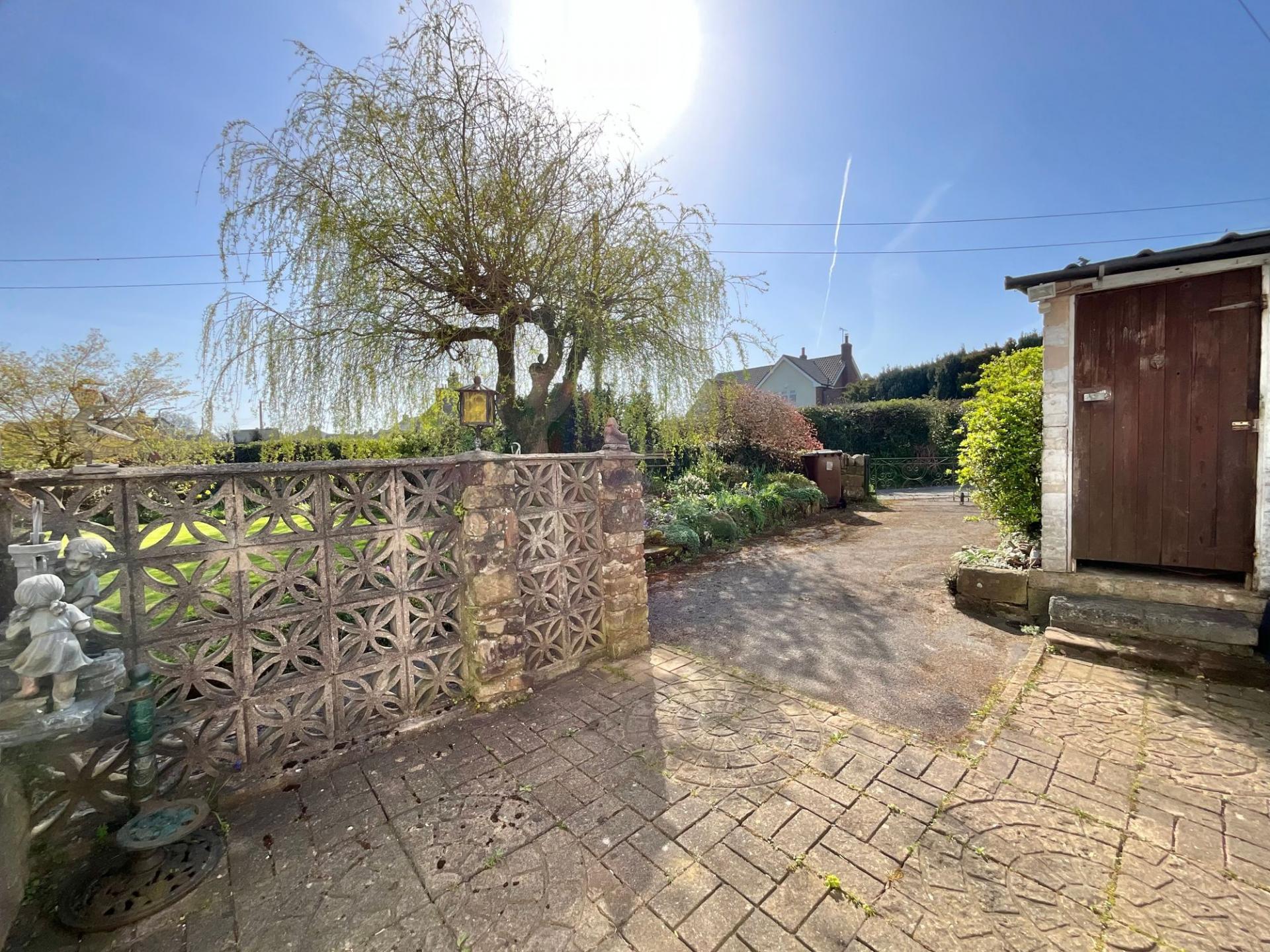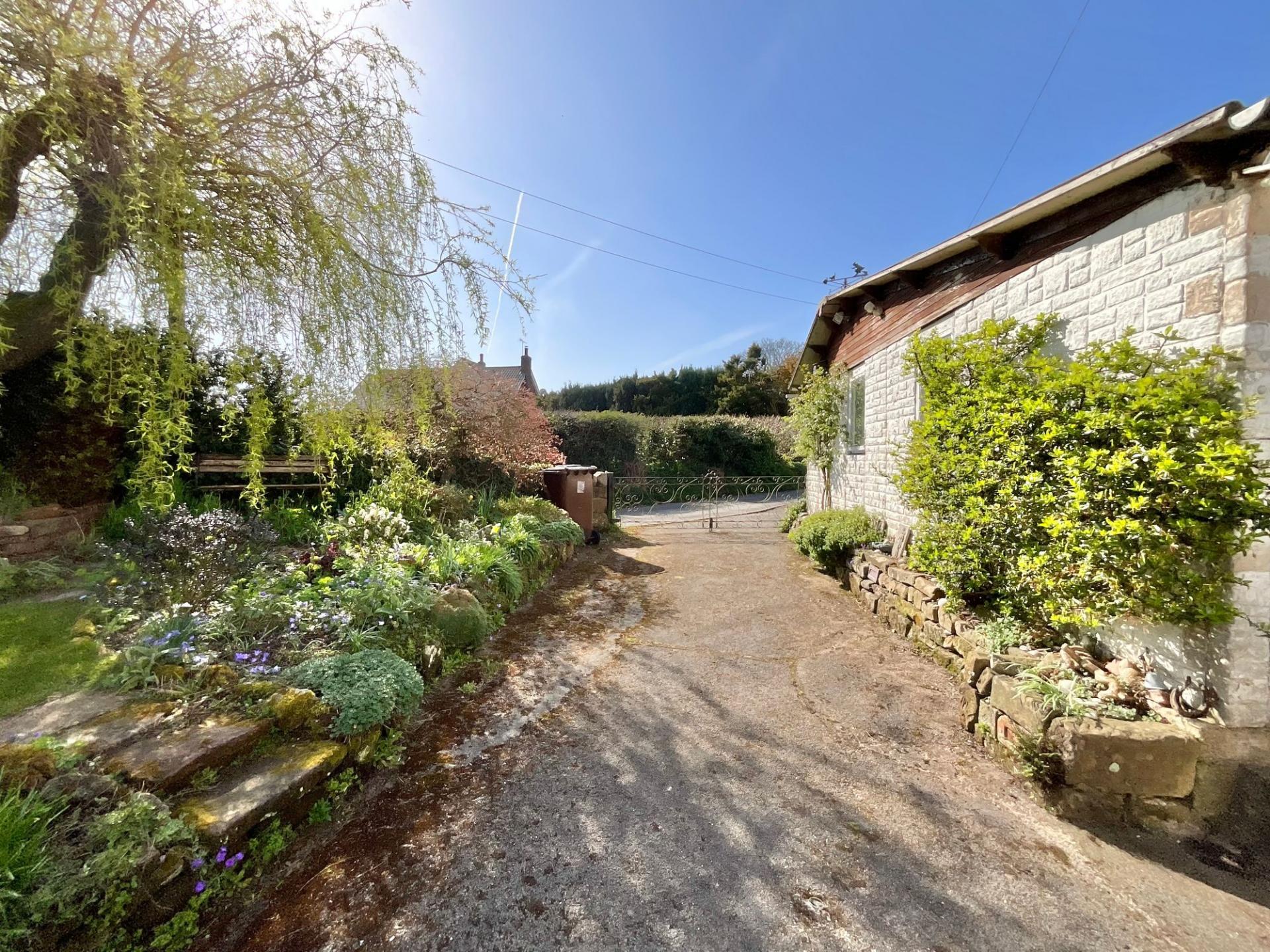 - Ample parking with detached garage including inspection pit, with gates leading to a driveway with further space in front of the garage.
