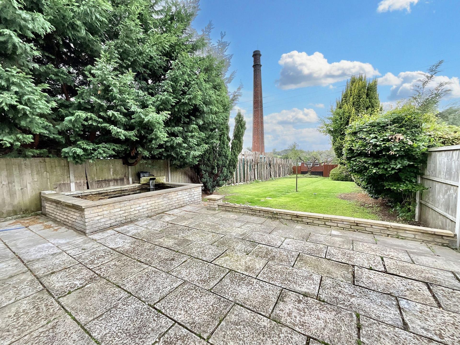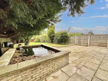 - A large, lush, and fully enclosed garden, edged with mature shrubs and fencing. At the top, you'll find a paved patio area, And yes, there’s even a raised feature fish pond and a damson tree.