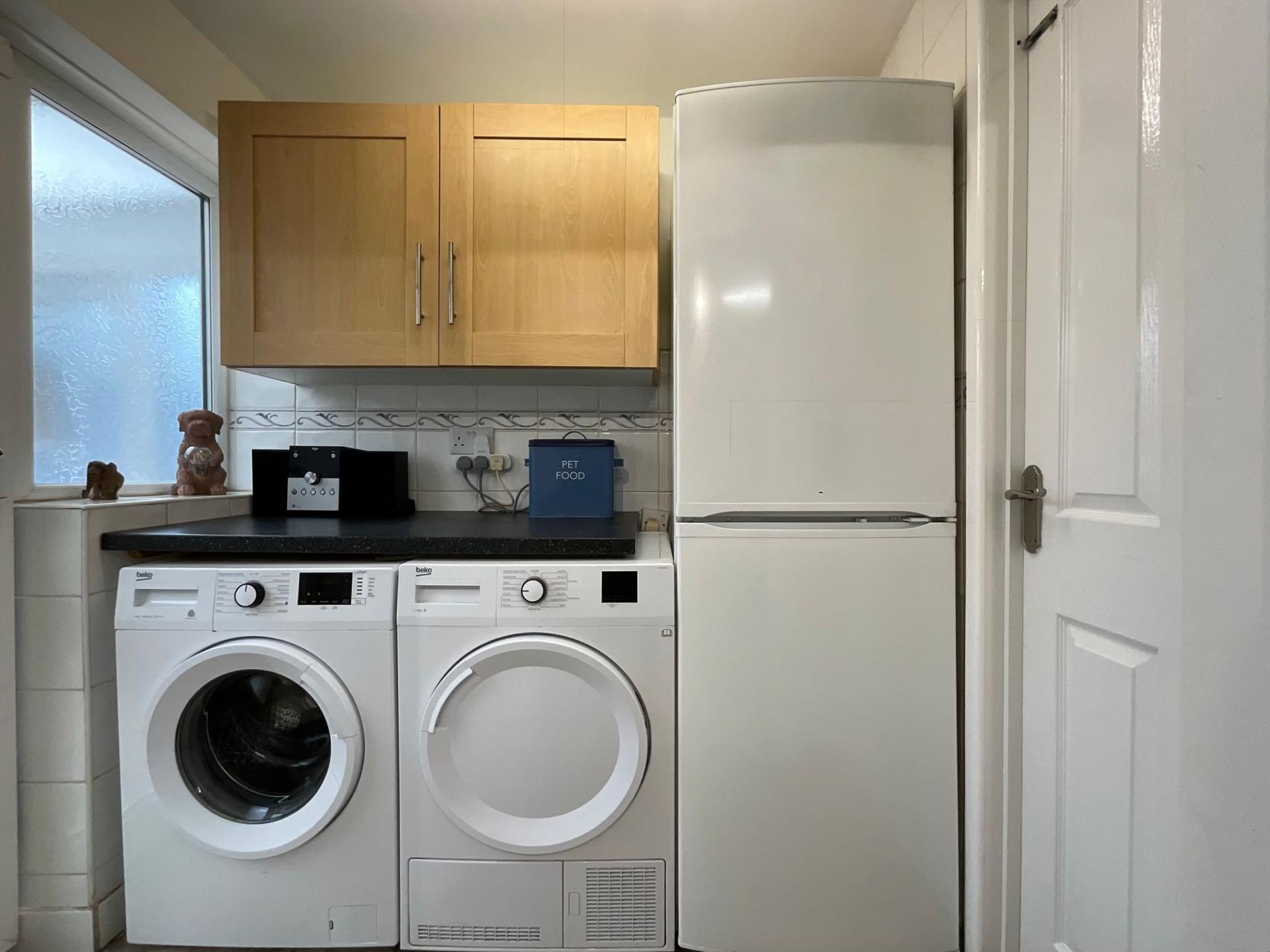 - A well-stocked kitchen. The kitchen acts as a central reservoir, brimming with storage, stylish shaker cabinets, and a steady stream of functionality, supported by a handy utility.