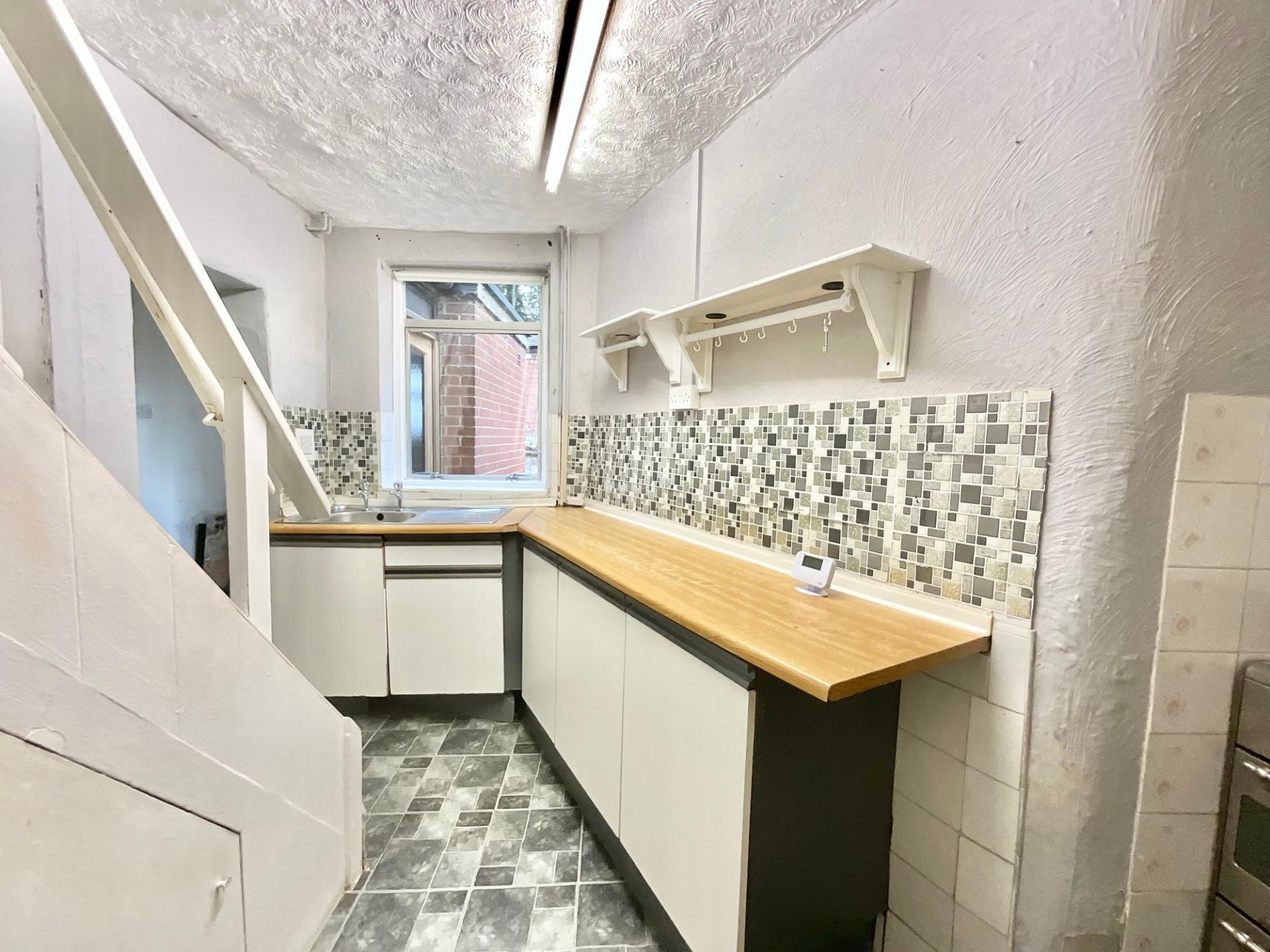 - The kitchen is quirky in shape, with a functional under stairs storage area and a recently updated boiler. Overlook the outdoor area whilst you cook up a storm.