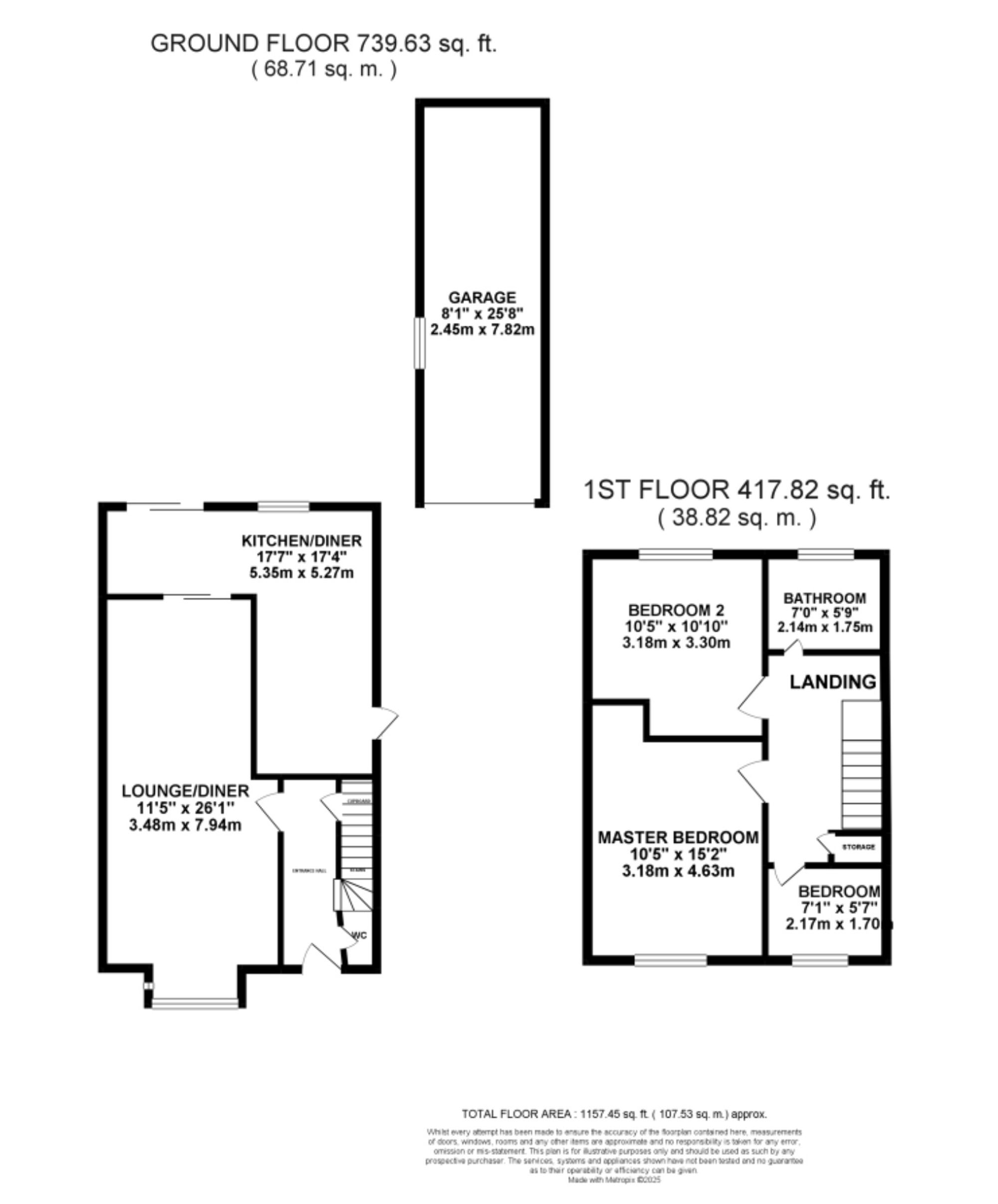 - Three comfortable bedrooms, including a spacious master with fitted wardrobes, a second double, and a flexible single or home office.