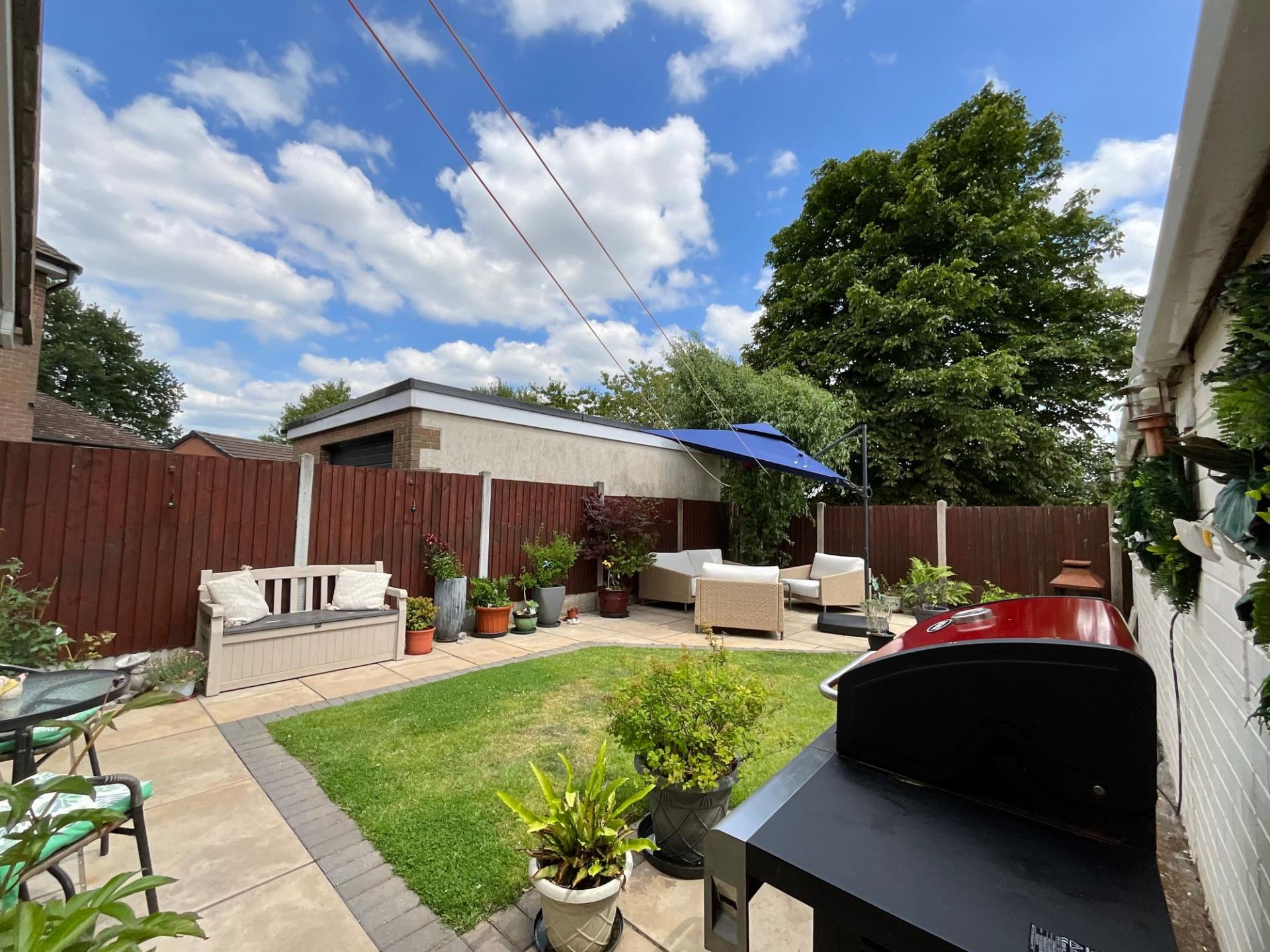 - Charming rear garden sanctuary with mature trees beyond and patio - ideal for al fresco dining or relaxing under a parasol.
