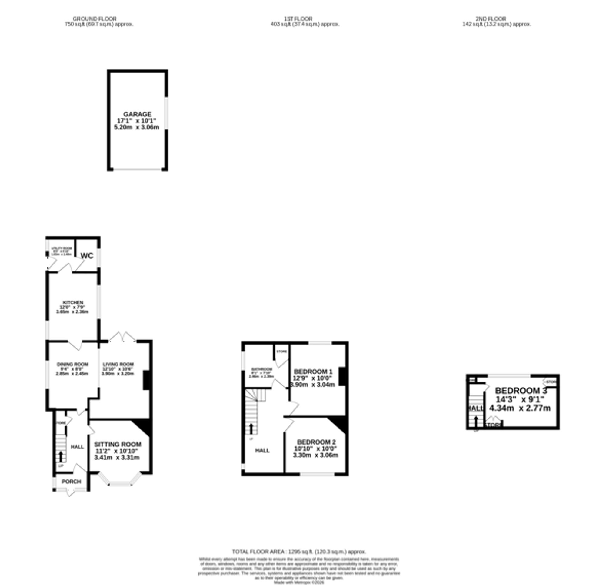 - Three great sized bedrooms, one being on the top floor with gorgeous views! Bathroom with bath and shower combination, wc and pedestal basin.