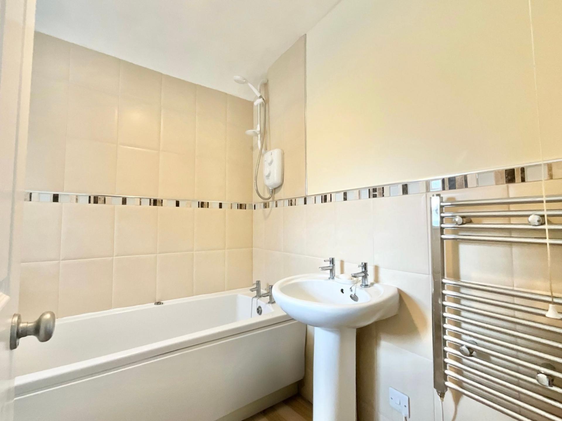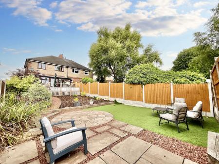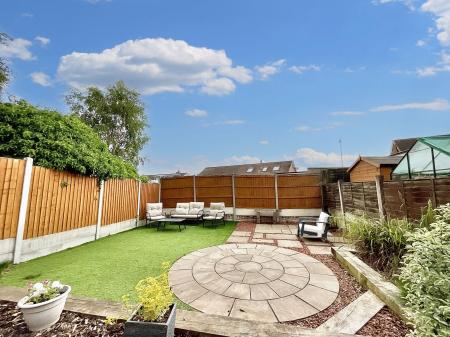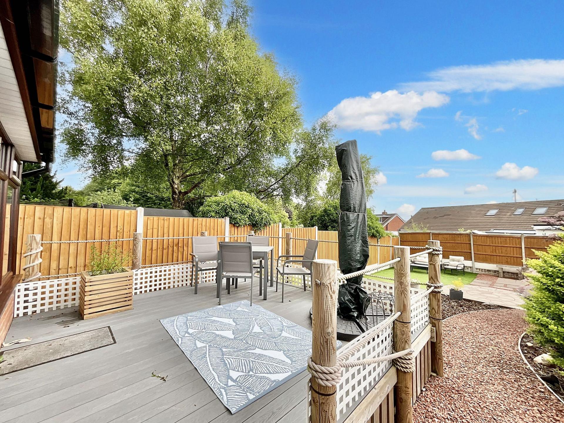 - A South East facing low maintenance rear garden offers a secluded outlook with decked seating area, mature beds and artificial grass.