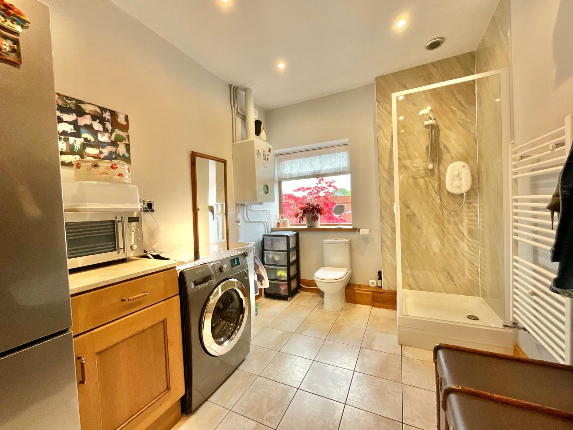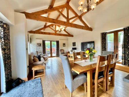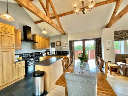 - Spacious open plan living with a large living-dining area with French doors, a rustic shaker-style kitchen with central island, and flexible space for family life or entertaining.