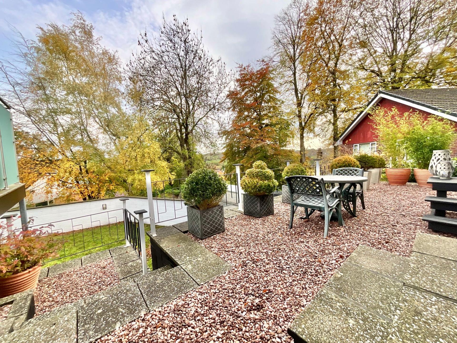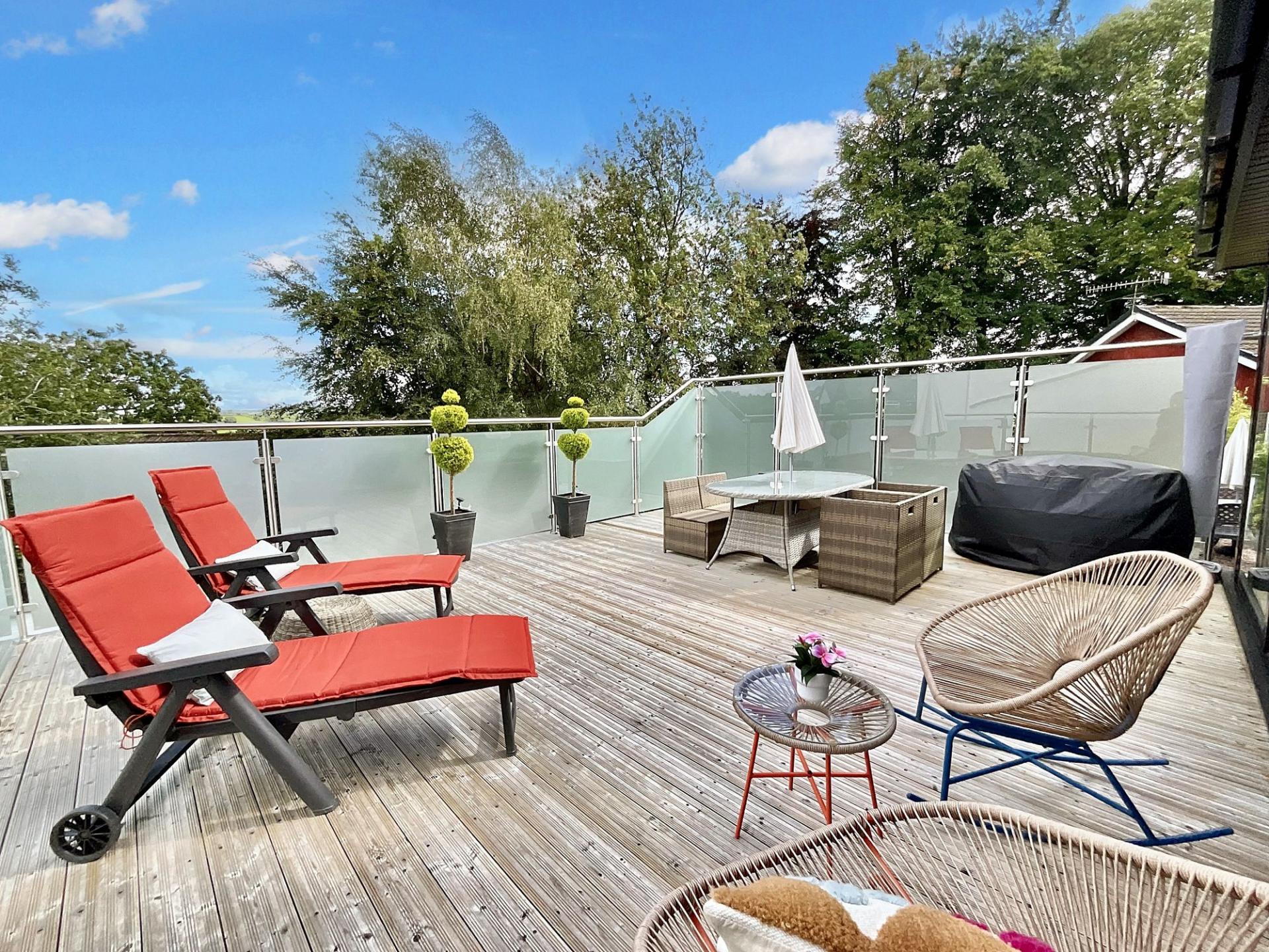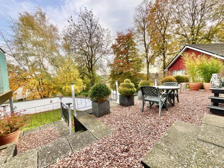 - A paved driveway with space for multiple vehicles, plus a double garage, ideal for those chilly winter mornings. Outside a lush green enclosed garden with multiple patio and seating areas.
