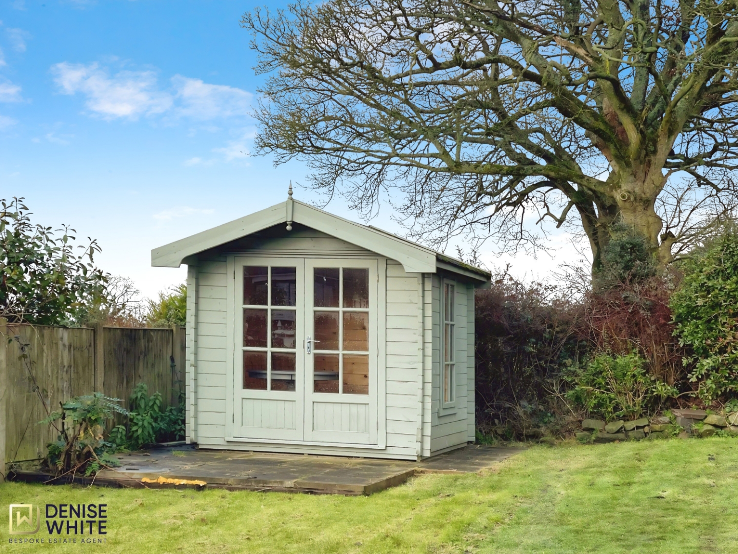 - Large rear garden with patio, expansive lawn, open views across rolling hills